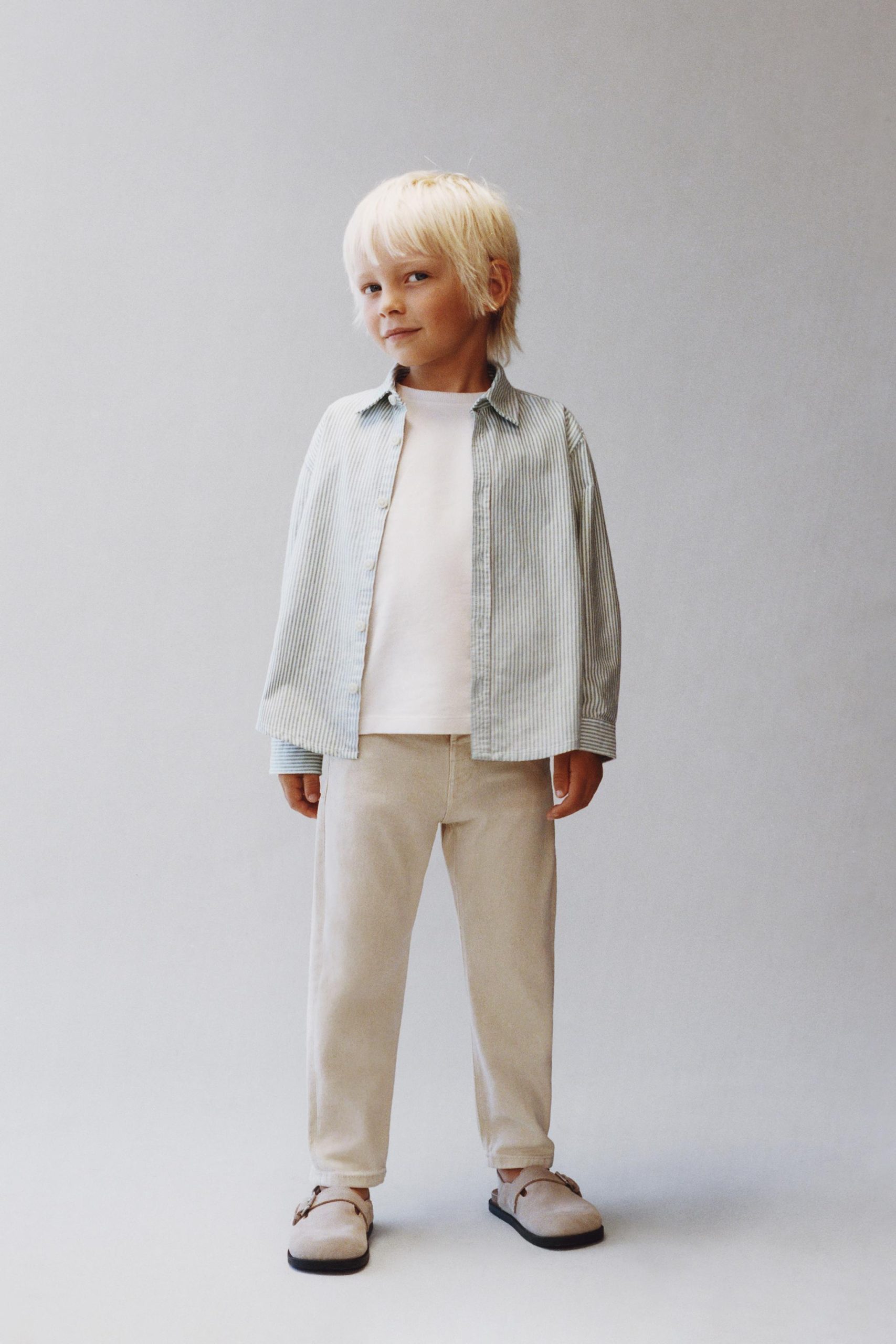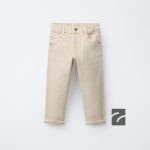 شلوار کتان با فیت قابل تنظیم در ناحیه کمر و دکمهدار در جلو. دارای جیبهای جلو و جیبهای پشتی. پاچههای کج.