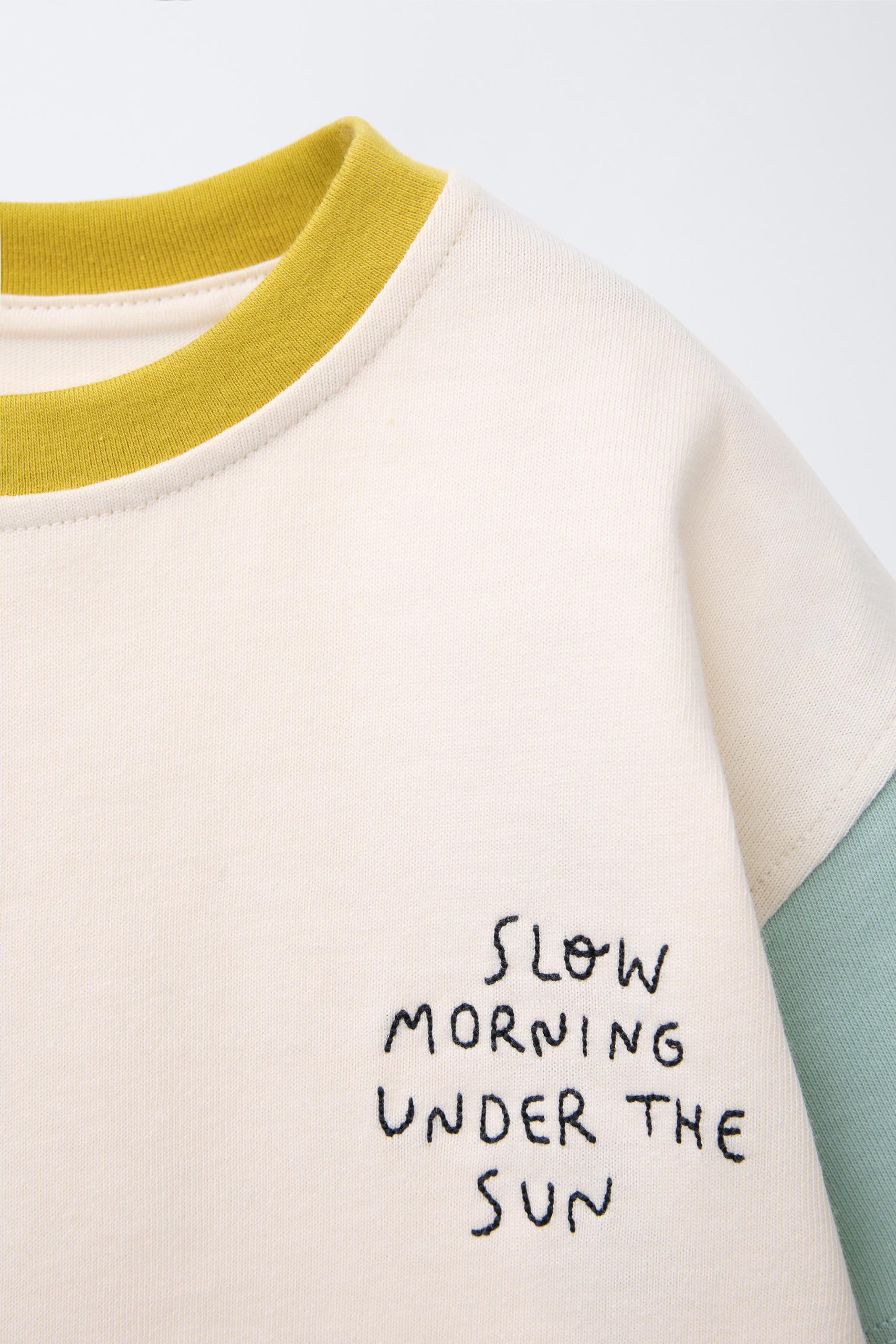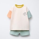 ست دو تکه شامل تیشرت یقه دوچرخهای و آستین کوتاه با جزئیات گلدوزی شده بر روی سینه و شلوار برمودا با کمر کشی و بند جلو. پارچه این ست ۱۰۰٪ پنبهای است.