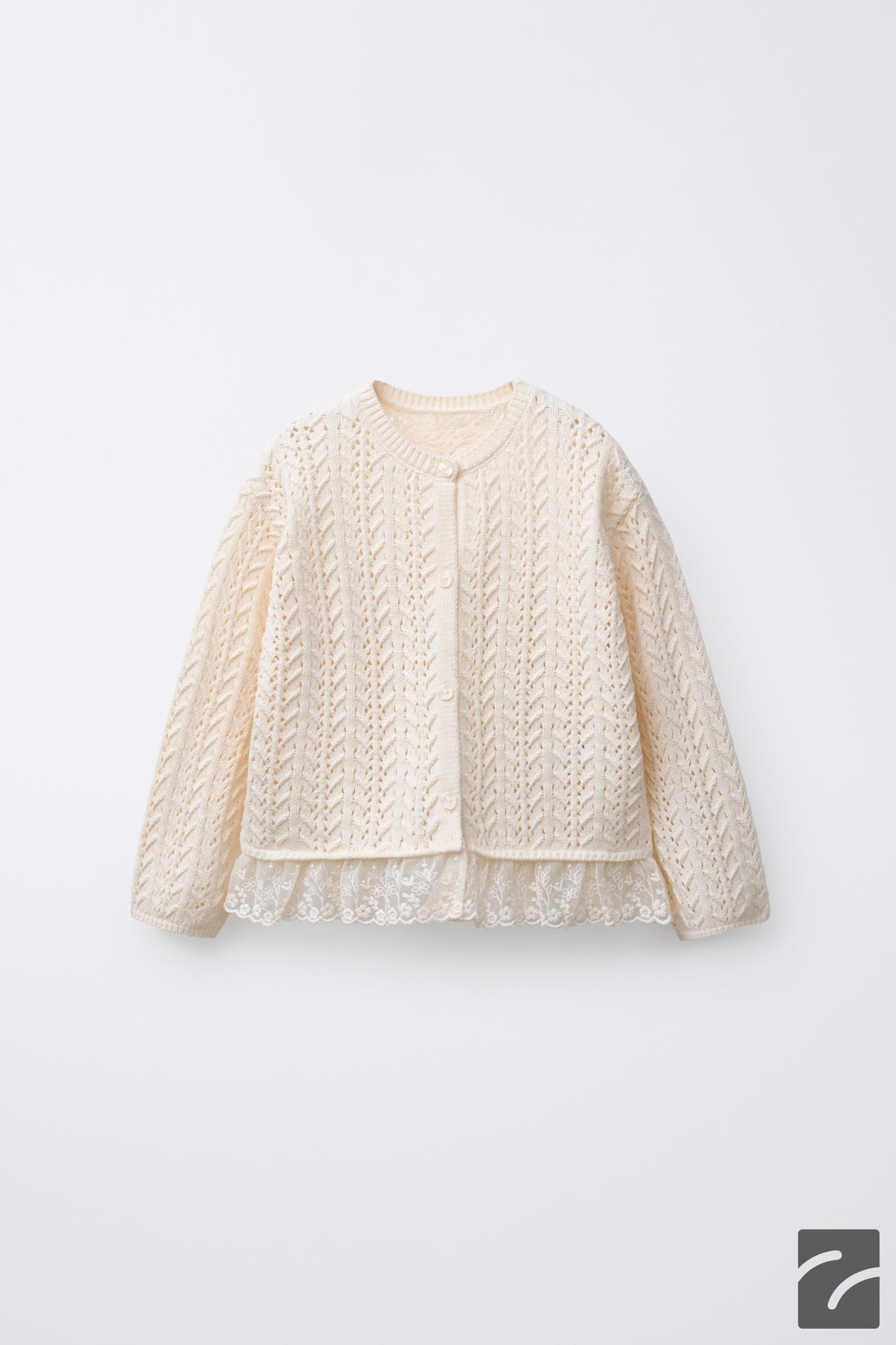 - Bisiklet yaka ve uzun kollu örgü hırka. Önden düğme kapamalı. Etek ucu dantel detaylı.