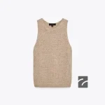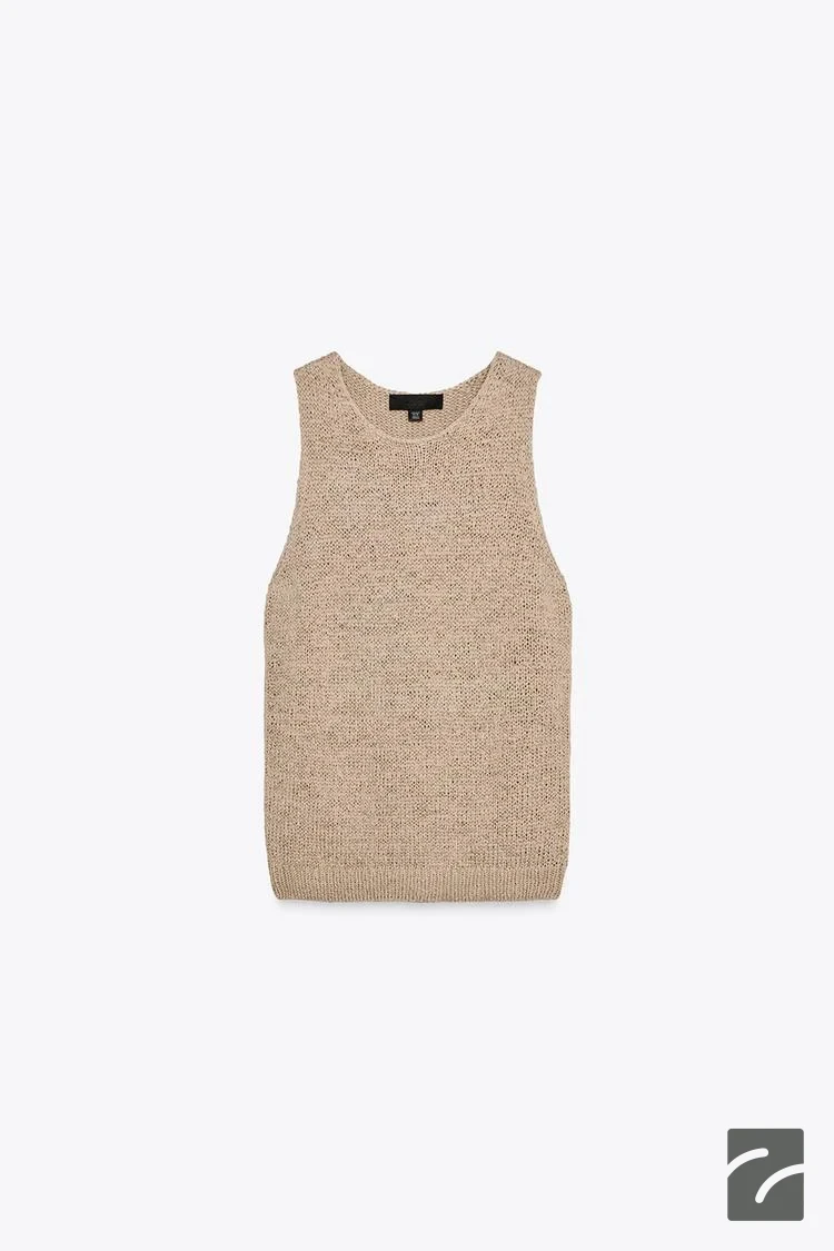 تیشرت یقه گرد، بدون آستین و با نوار راهراه.
