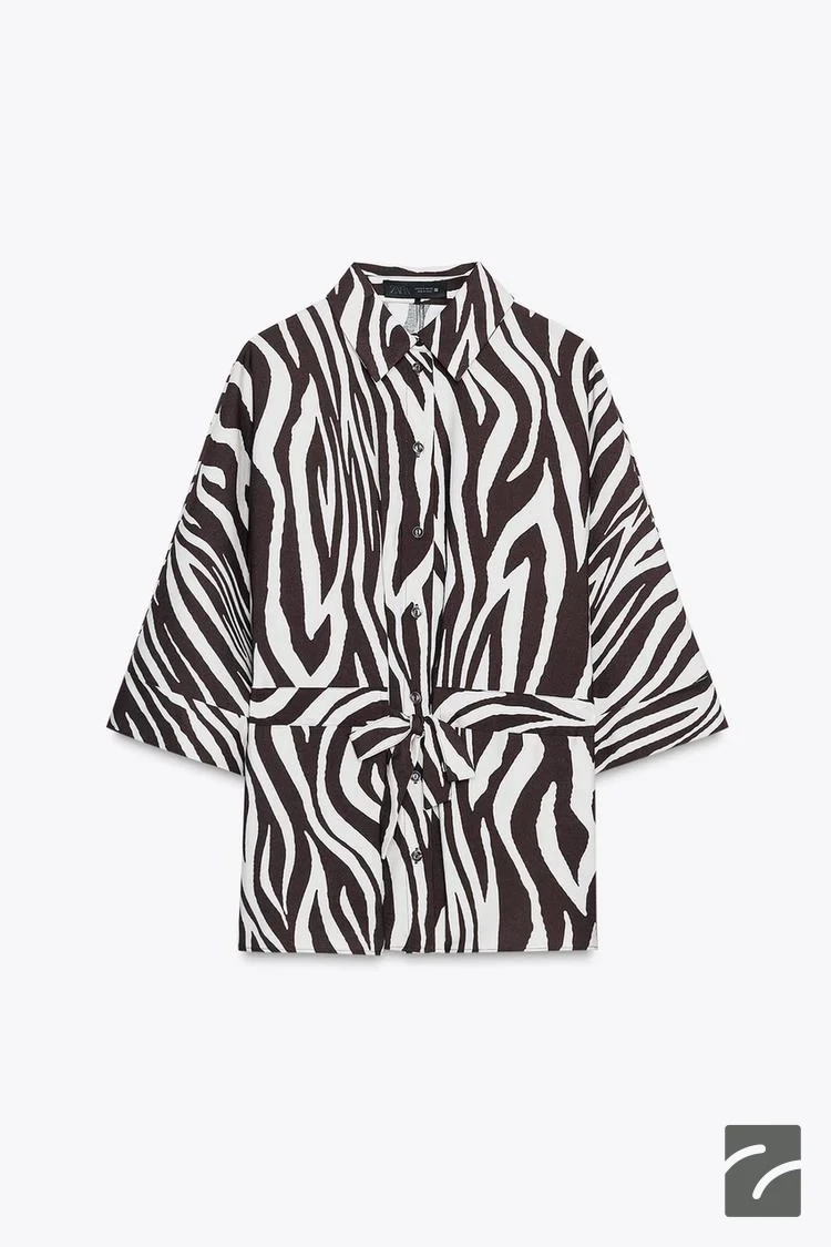 پیراهن یقهدار با آستین گشاد و کمربند از برند زارا (زنانه)