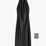 - Pens ve bağcıklı, yüksek yakalı elbise. Açık sırt detaylı.