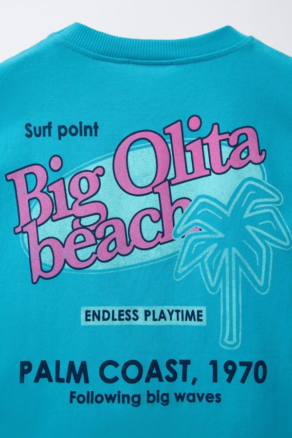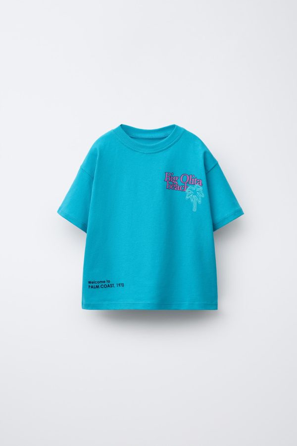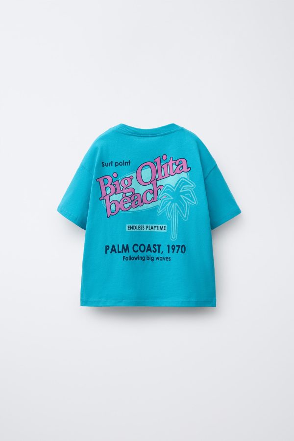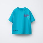 - Bisiklet yaka, kısa kollu t-shirt. Göğüs ve sırtta slogan baskılı.