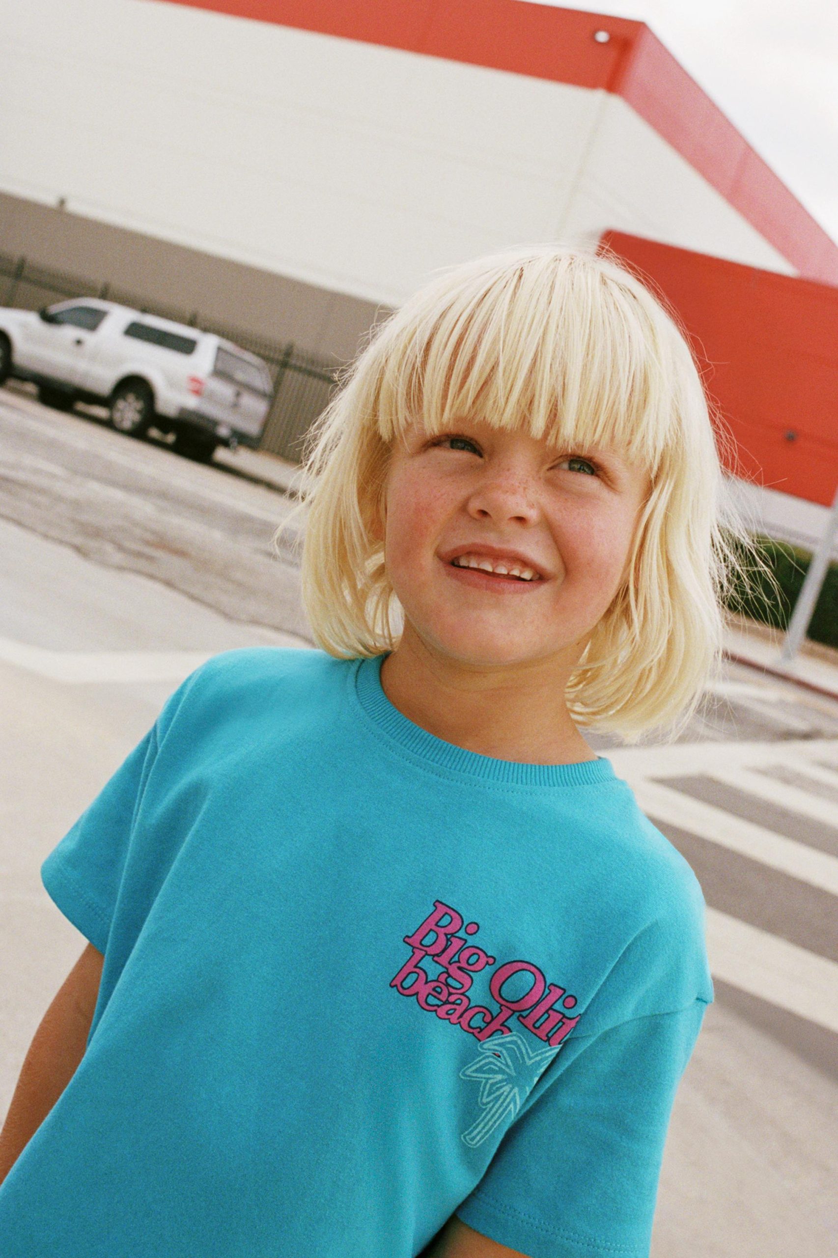 Bisiklet yaka, kısa kollu t-shirt. Göğüs ve sırtta slogan baskılı.