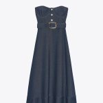 - Straplez midi elbise. Metal tokalı, aynı kumaştan ayarlanabilir kemer. Kontrast vurgulu dikiş detaylı. Etek ucu kloş kesim.