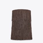 Düz yakalı ve omuzları açıkta bırakan kısa elbise. Püskül detaylı. Kombine iç astar. Sırtta dikişe gizlenmiş fermuar ve metal kancayla kapatılır.