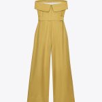 - Düz yakalı, kıvırmalı ve omuzları açıkta bırakan tulum. Aynı tonda kemer detaylı ve ön cepli. Geniş paçalı. Arkası dikiş içinde gizli fermuarlı.