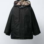 - Özel su itici kumaşlı ceket. Kapüşonlu, dik yakalı ve iç manşetli uzun kollu. Önü patletle gizlenmiş fermuar ve çıtçıt düğmeli kapama. Biye detaylı ön cepler. Yanları yırtmaçlı etek ucu. Hayvan desenli suni kürk iç astar.