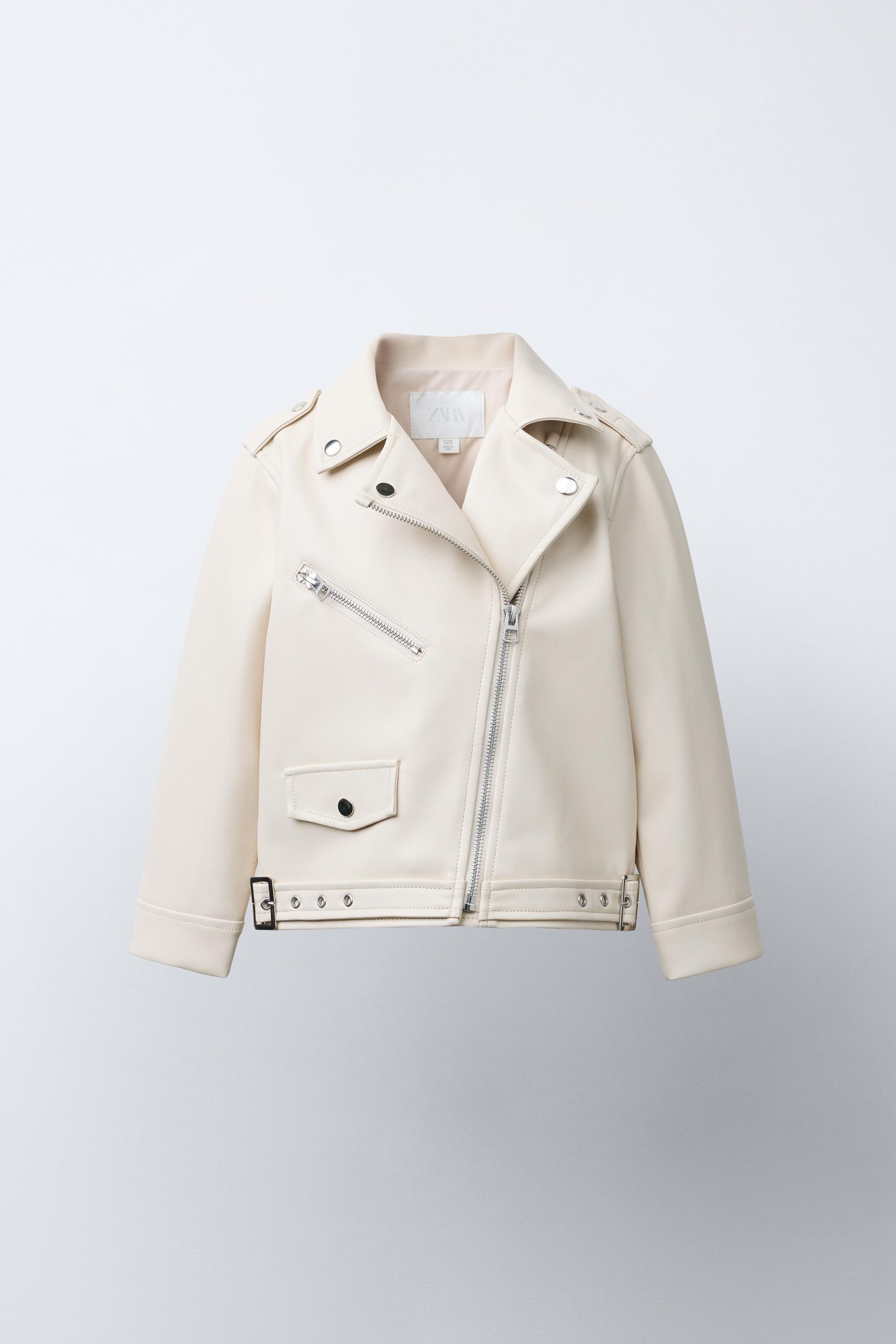 جاکت بایکر تیپی با یقه و آستینهای بلند. دارای زیپ در قسمت جلو. در جلوی جاکت، جیبهای زیپدار قرار دارد.