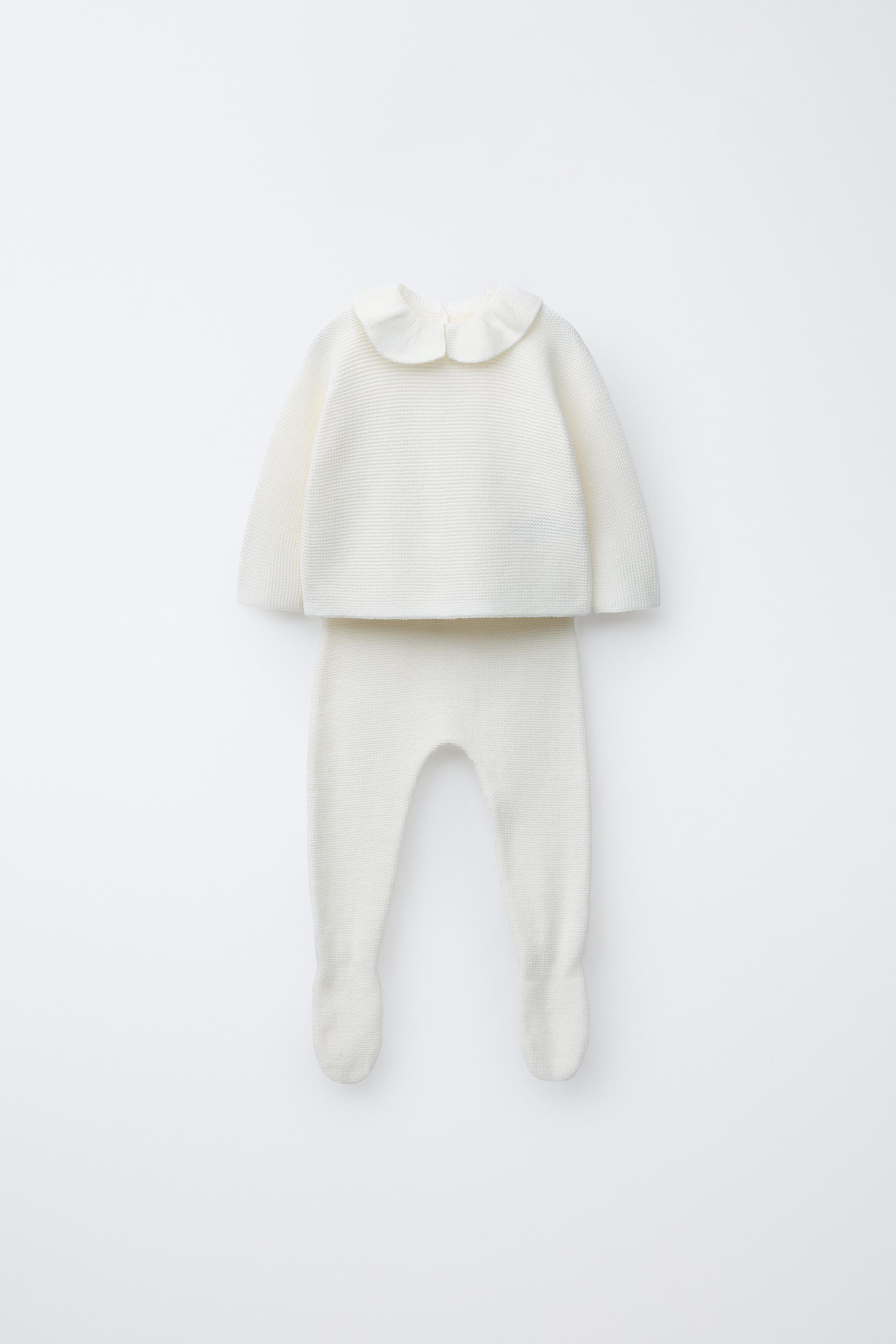 • Bebe yaka, uzun kollu, örgü kazak. Sırtı düğmeli.