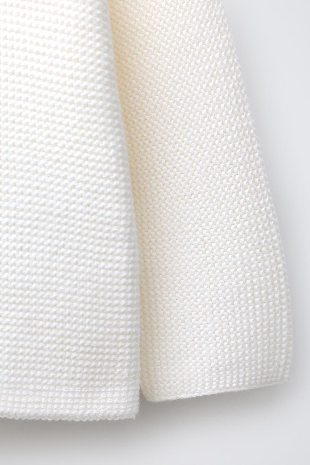 کاپشن با یقه ببه، آستین‌های بلند و بافتنی. دارای دکمه در پشت.