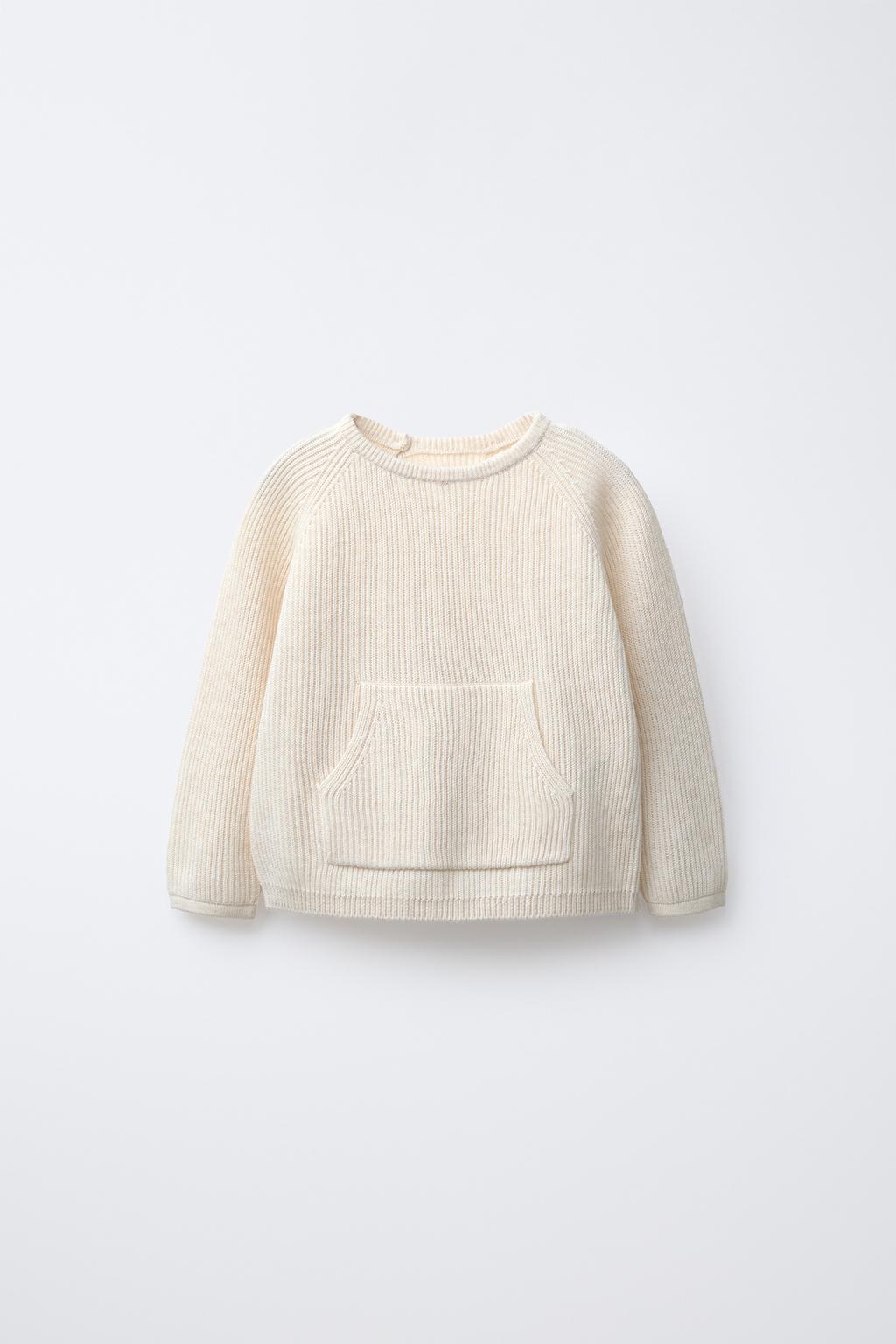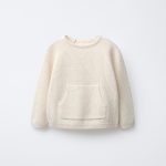 Bisiklet yaka, uzun kollu, örgü kazak. Omuzda düğme kapamalı. Önde kanguru cepli.