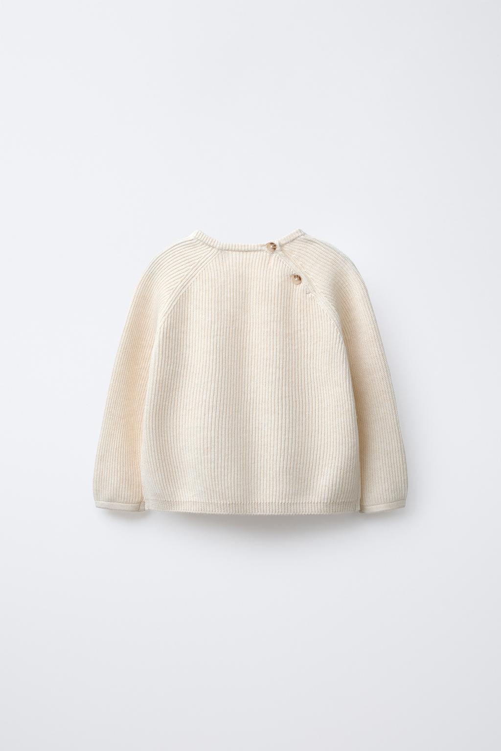 • Bisiklet yaka, uzun kollu, örgü kazak. Omuzda düğme kapamalı. Önde kanguru cepli.