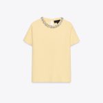تیشرت ساده با یقه گرد و آستین کوتاه، دارای جزئیات مرواریدی و زیبا.