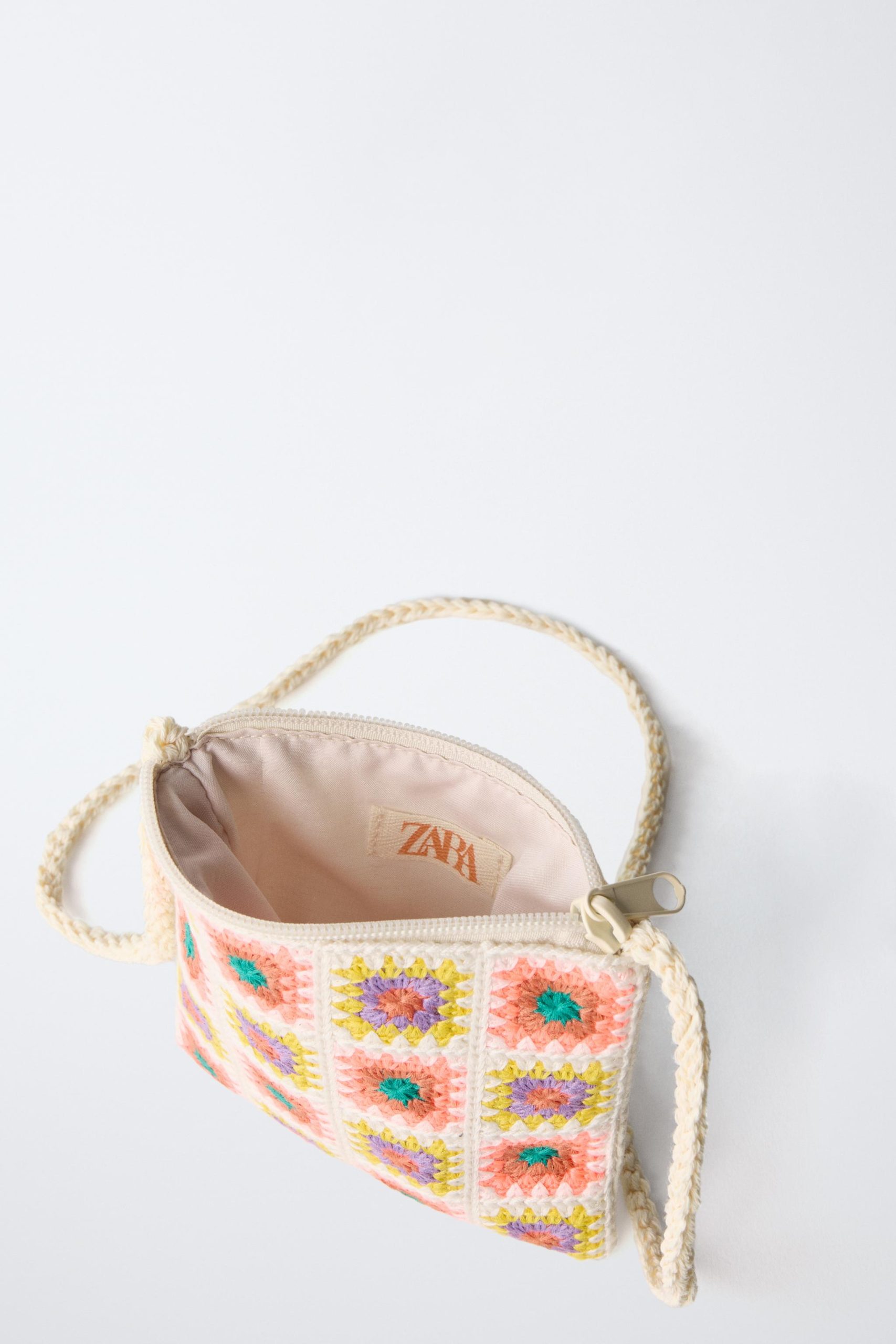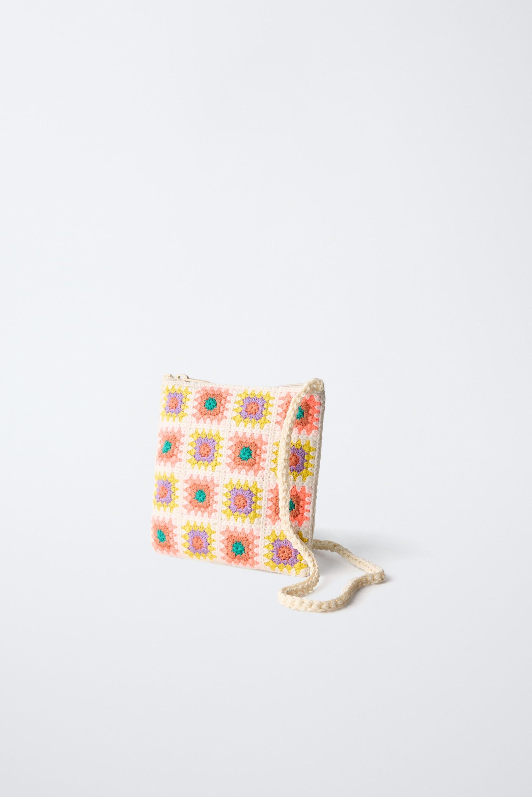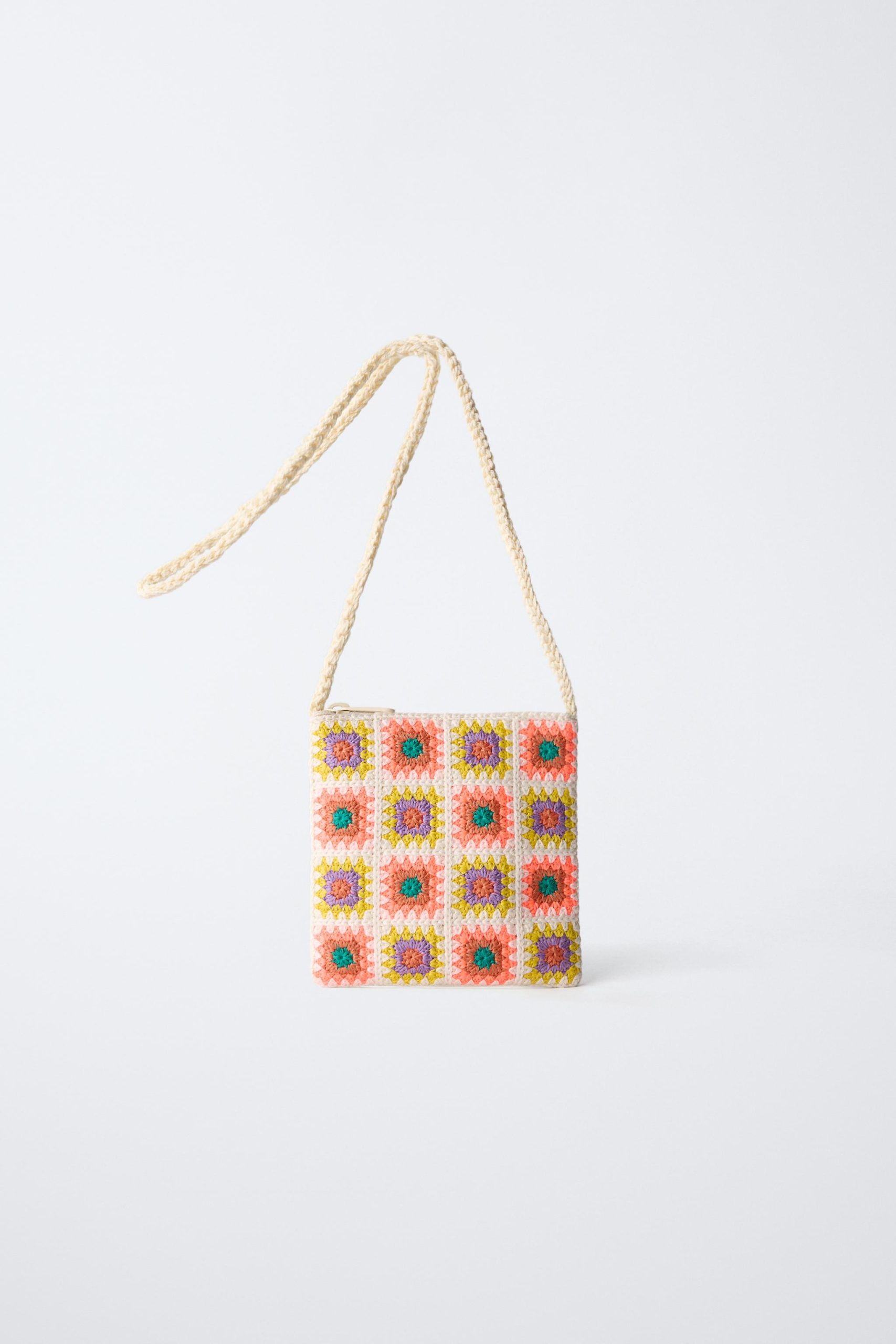 - Tığ işi detaylı çapraz askılı çanta. Fermuarlı ana bölme. Omuz askısı.