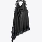 تاپ با یقه هالتر و شانههای باز. جزئیات آستری با توری همرنگ. لبه دامن نامتقارن. با بند گردنی.