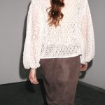- Lastikli, uzun kollu, geniş yaka üst. Pullu aplikeli. Düz kesim.