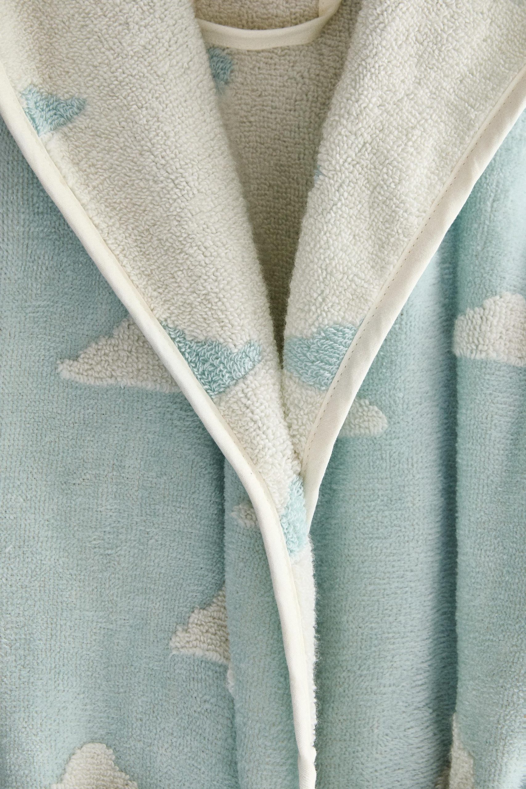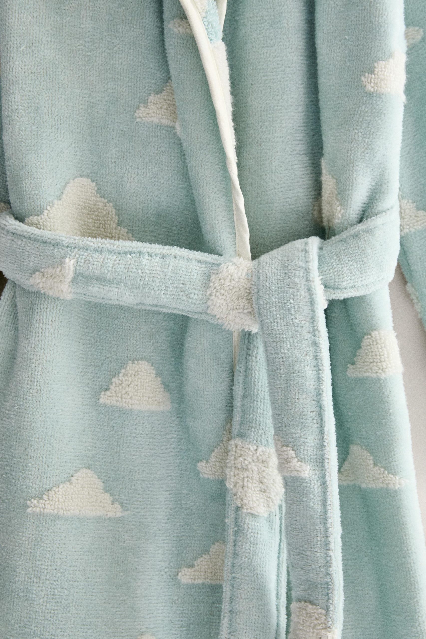 Toy Story ©Disney/Pixar karakterlerinden Andy’nin odasındaki ikonik duvar kağıdından esinlenerek hazırlanan bulut desenli, yumuşak velur pamuklu çocuk bornozu.