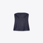 • Düz yakalı, omuzları açıkta bırakan üst. Arkadan metal fermuarlı kapama.