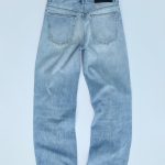 شلوار جین متوسط با کمر پلدار و پنج جیب. دارای زیپ در جلو و بسته شدن با دکمه فلزی.