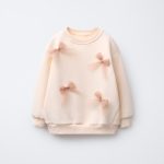 Bisiklet yaka, uzun kollu sweatshirt. Ribana detaylı. Önü tül kumaş fiyonk aplikeli. İçi şardonlu, sıcak tutan ve yumuşak. %64 pamuklu kumaş.