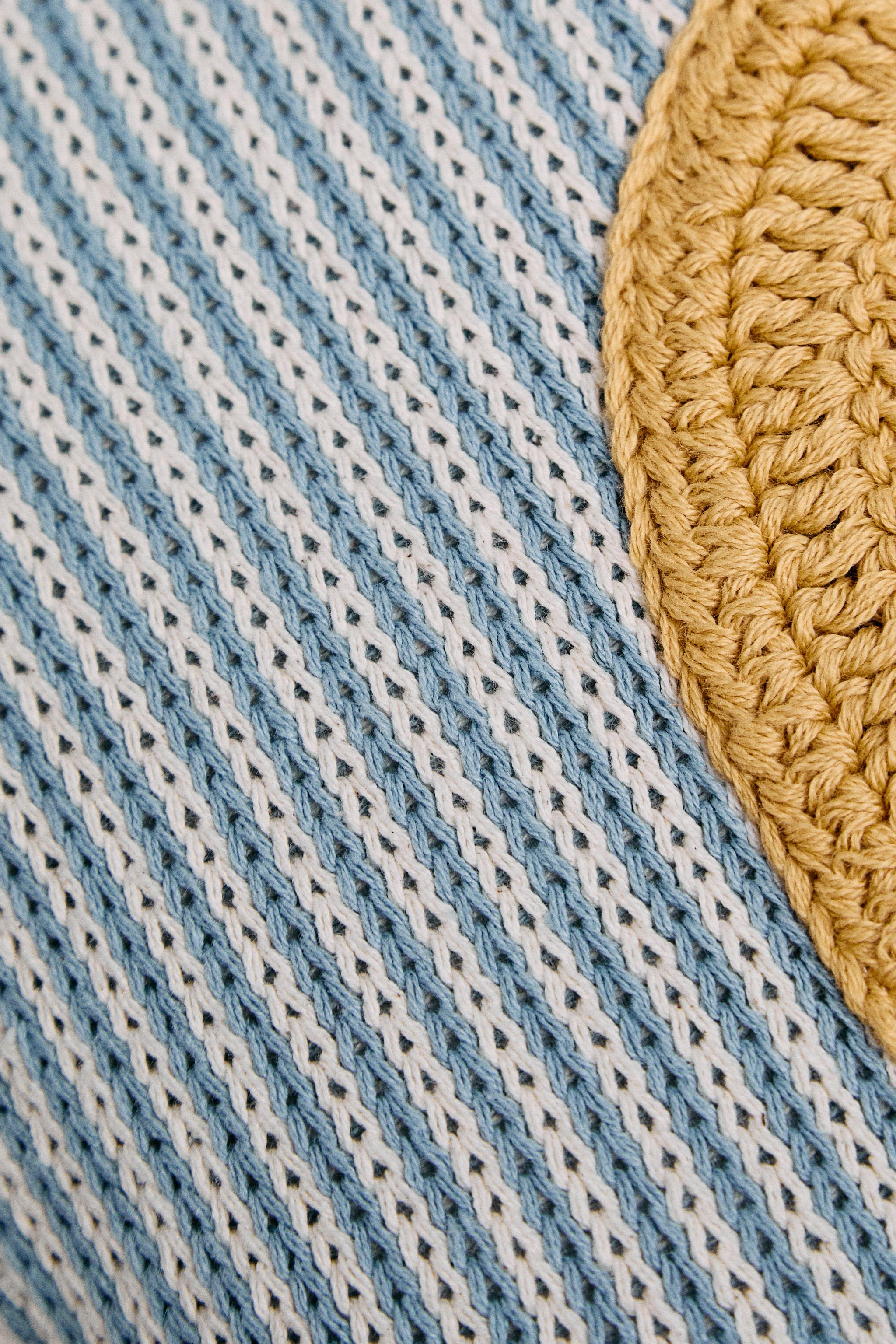 - Ortası “U” harfi işlemeli, çizgili tasarıma sahip pamuklu çocuk kırlenti.