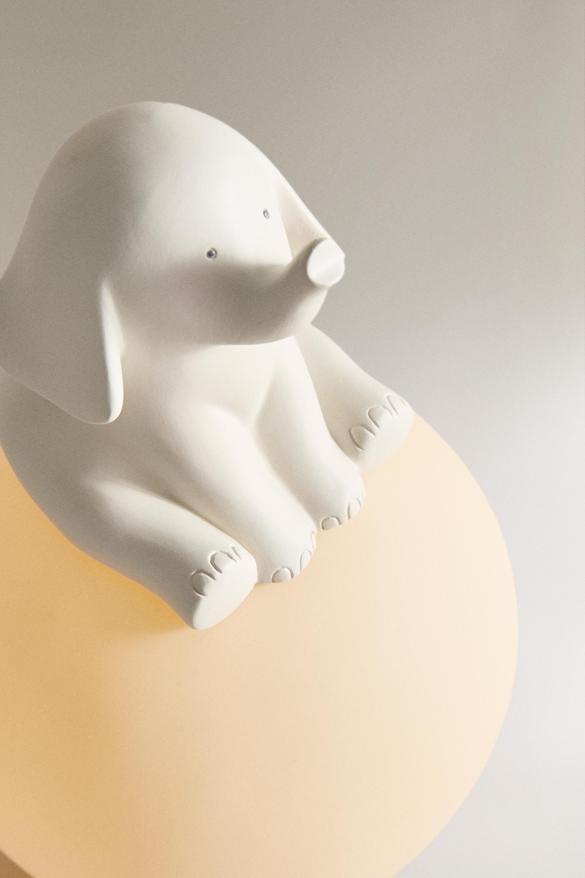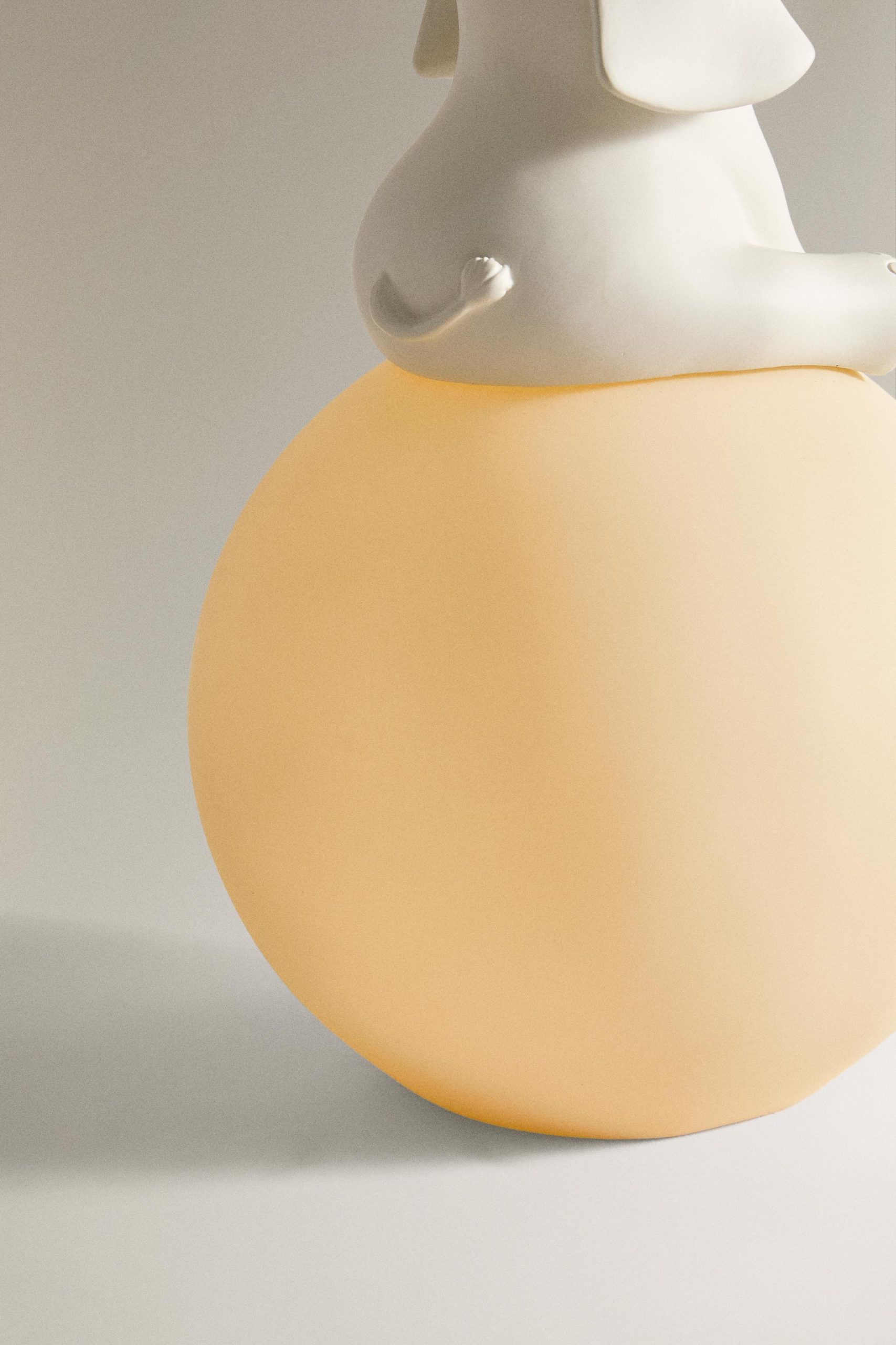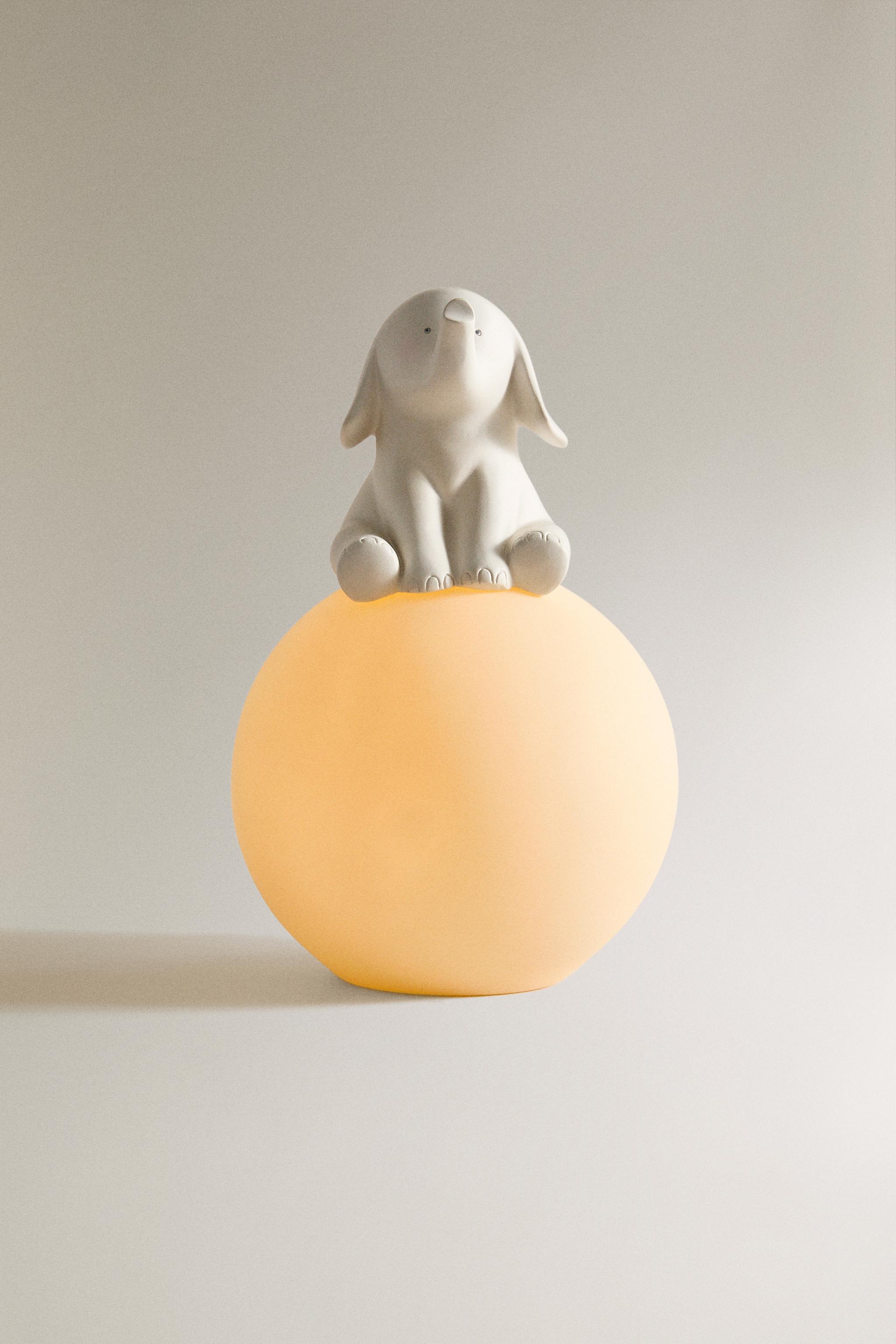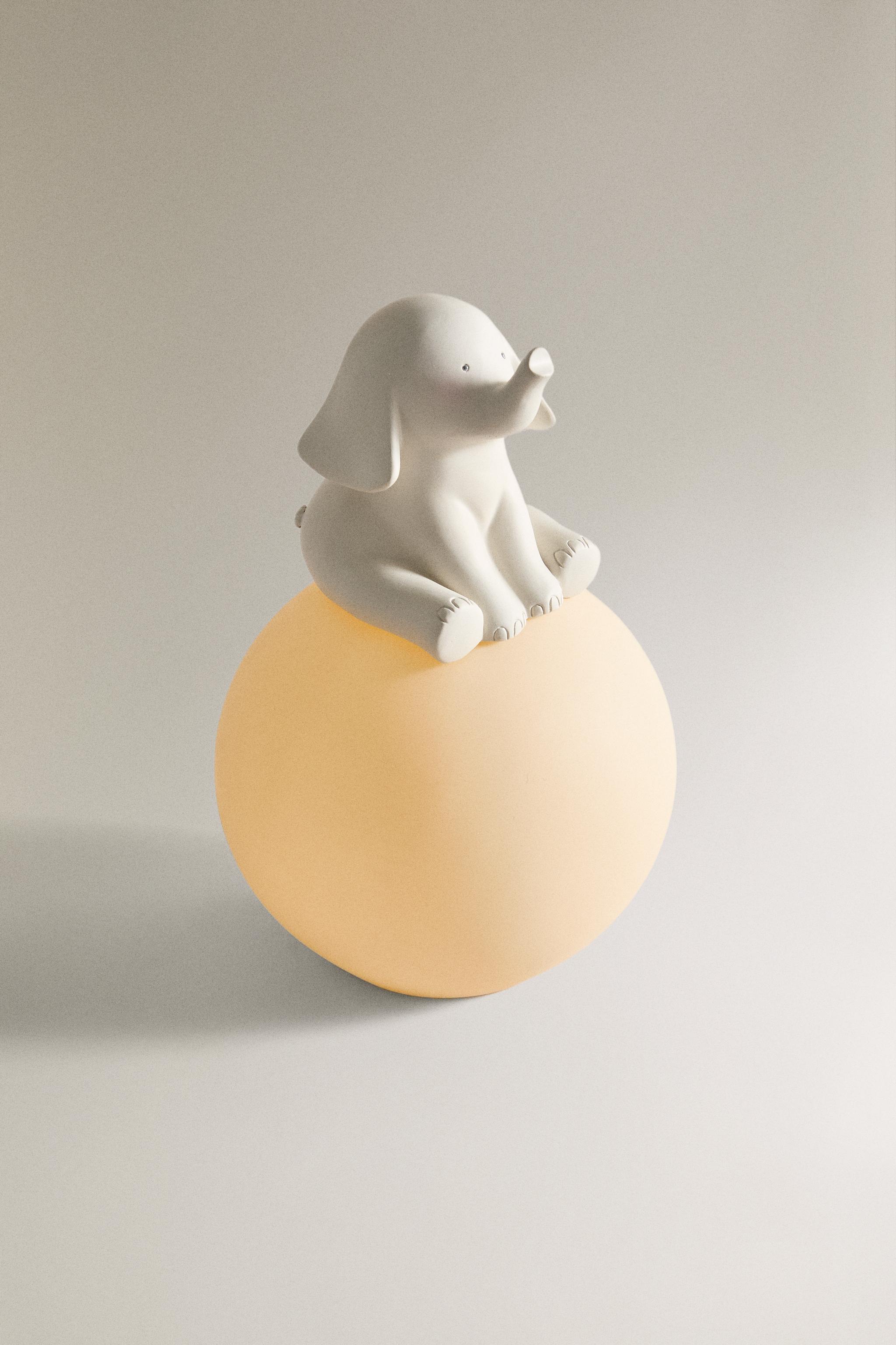 Üstü dikişli oturan fil motifli küre tabanlı gece lambası.