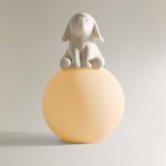 - Üstü dikişli oturan fil motifli küre tabanlı gece lambası.