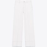 - Ön cepli ve arkada biyeli cepli, düşük bel pantolon. Ön kısımda nervür detaylı ve kontrast renklerde birleşik dikişli. Hafif kloş bitişli düz paça. Önden fermuar ve düğme kapamalı.