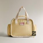 Yan cepli, fermuarlı, uzay yama aplikeli, kısa tutma saplı, düz renkli termal yemek kutusu.