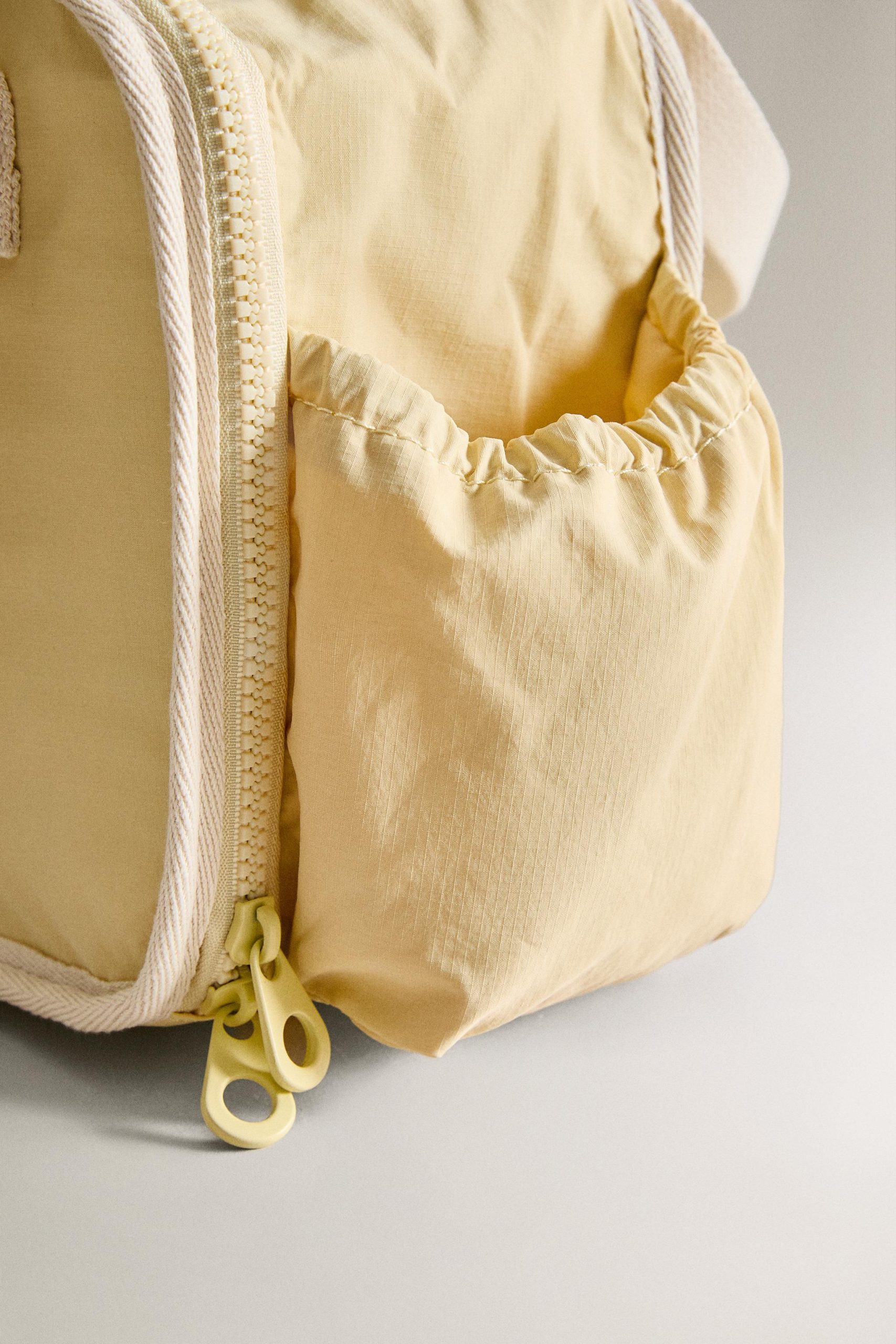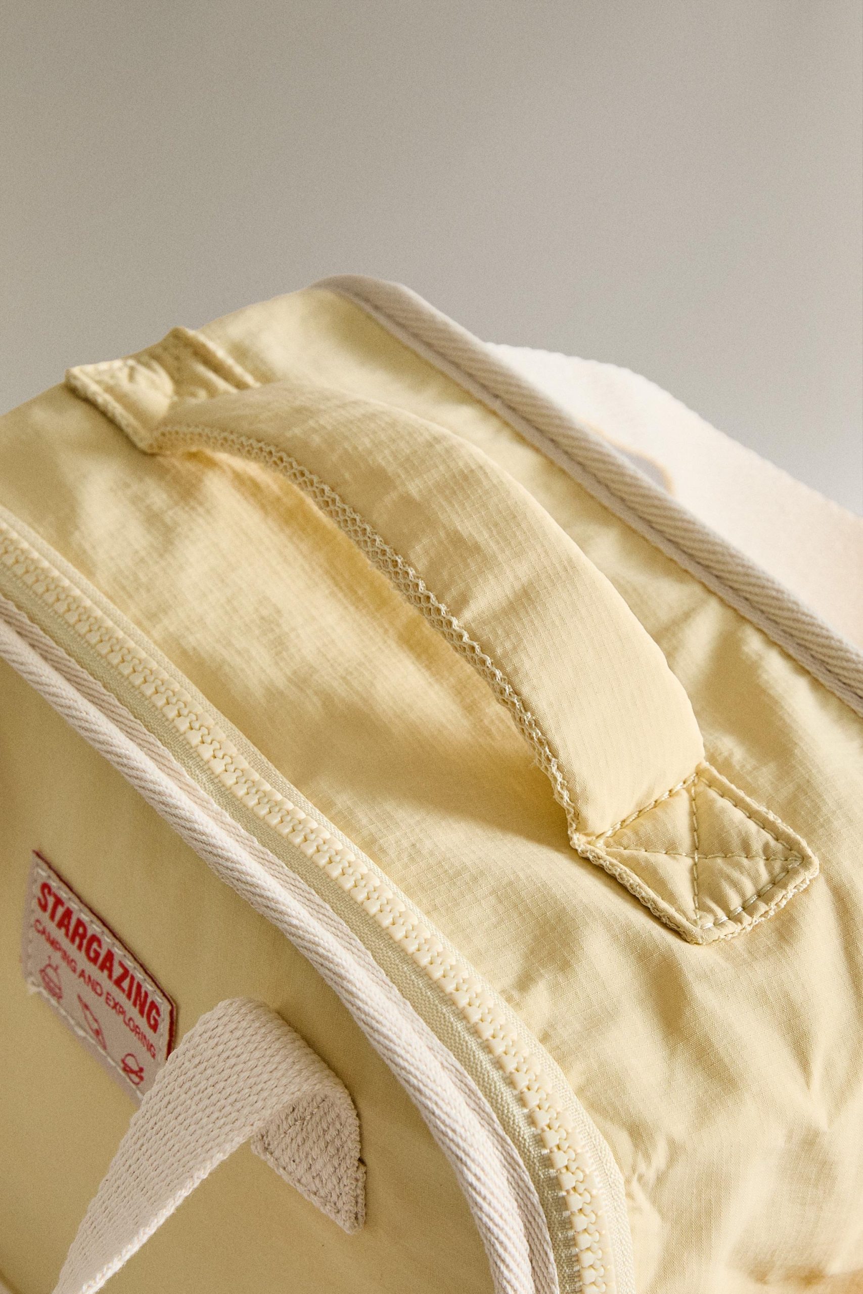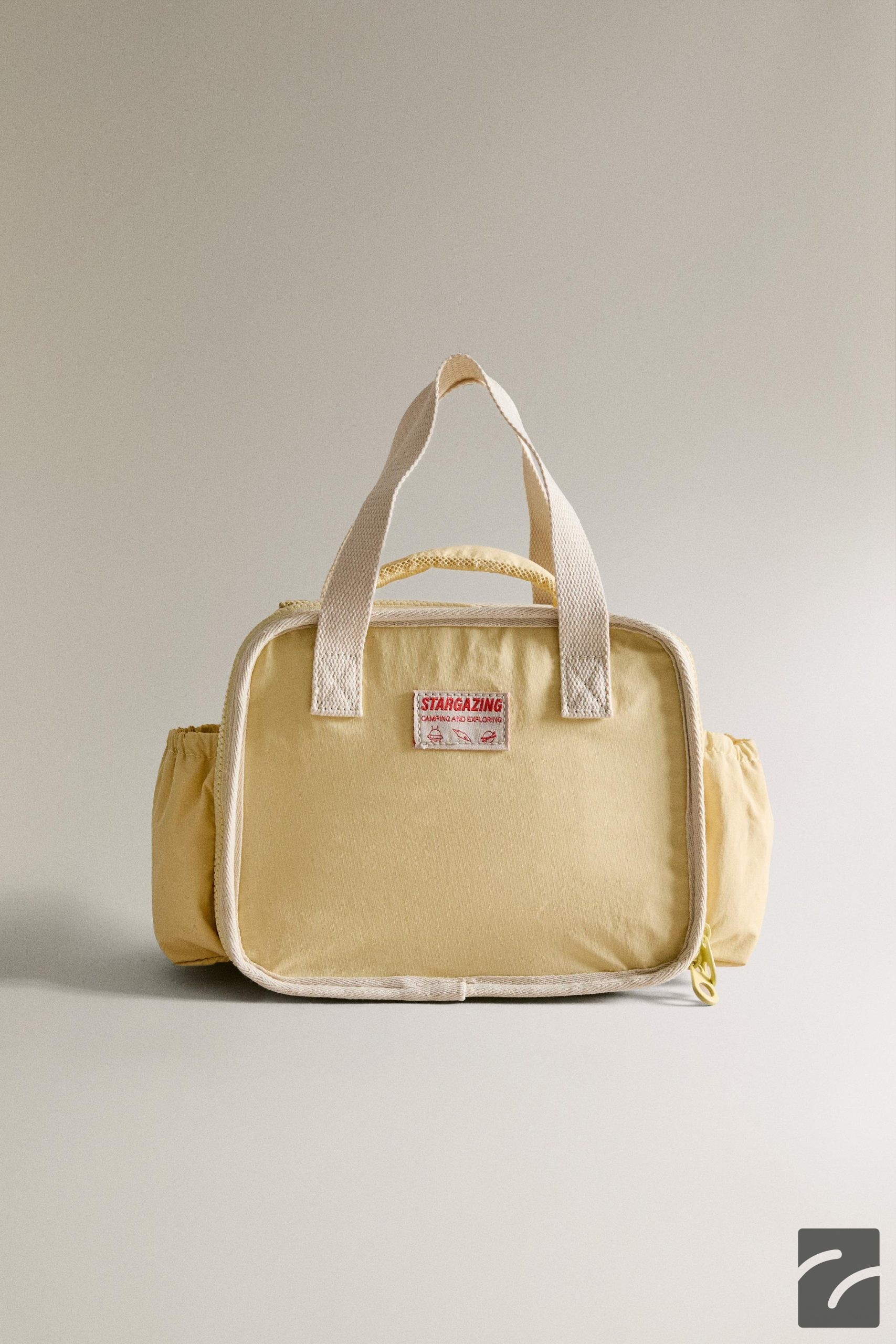 - Yan cepli, fermuarlı, uzay yama aplikeli, kısa tutma saplı, düz renkli termal yemek kutusu.
