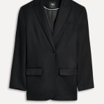 - İnceltilmiş pamuklu kumaş blazer. Çentikli katlı yaka. Vatkalı uzun kollu ve düşük omuzlu. Kapaklı ön cepli ve biyeli göğüs cepli. İç kapak detaylı. Astarlı. Önü düğmeli.