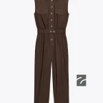 تولید با یقه پیراهن، بدون آستین و دارای جزئیات دکمهدار در جلو. کمربند کشی با رنگ هماهنگ. دارای جیبهای مخفی در دو طرف. پاچههای کج و دکمهدار در جلو.