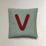 کوسن کودک با طراحی راهراه از جنس پنبه و با دوخت حرف ‘V’ در وسط. این کوسن دارای پرکردگی است.
