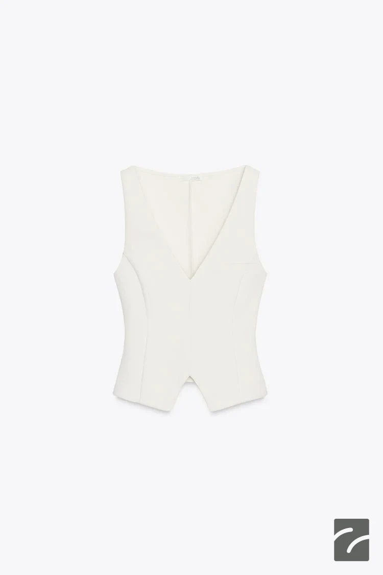 تاپ کتان با یقه V و جیب سینه از برند زارا (زنانه)