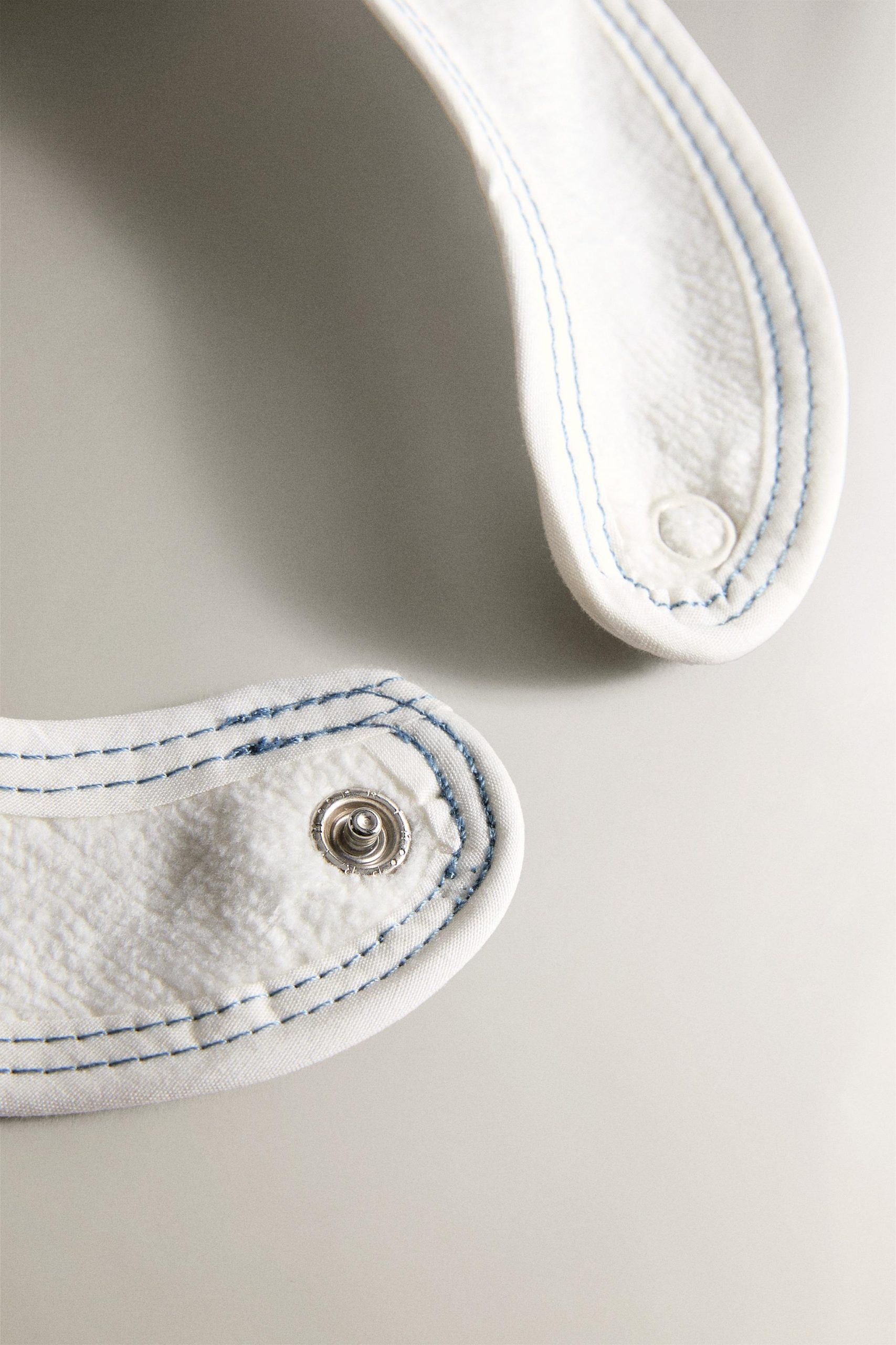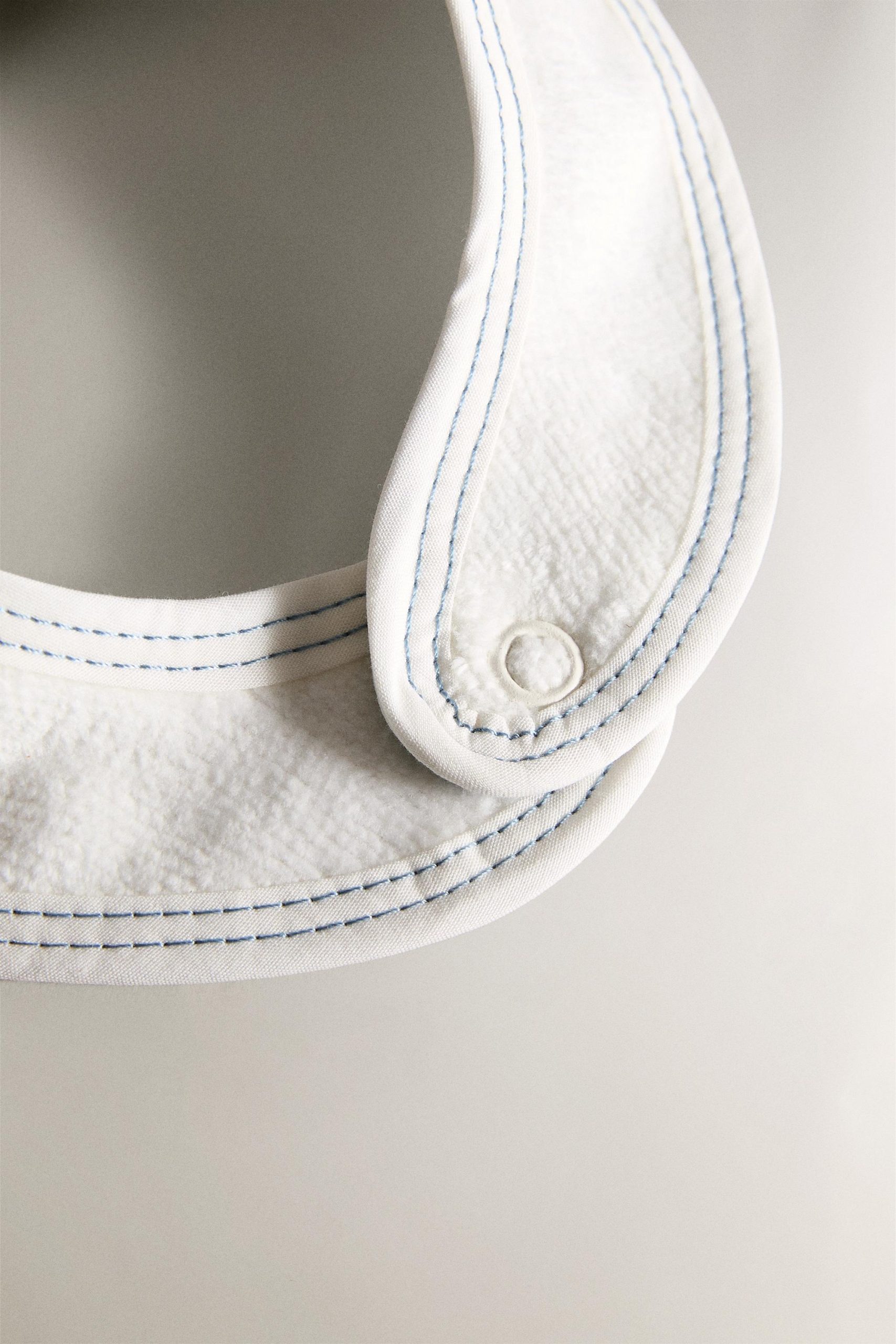 - Fil desenli ve kapamalı, pamuklu velur kumaştan bebek önlüğü.