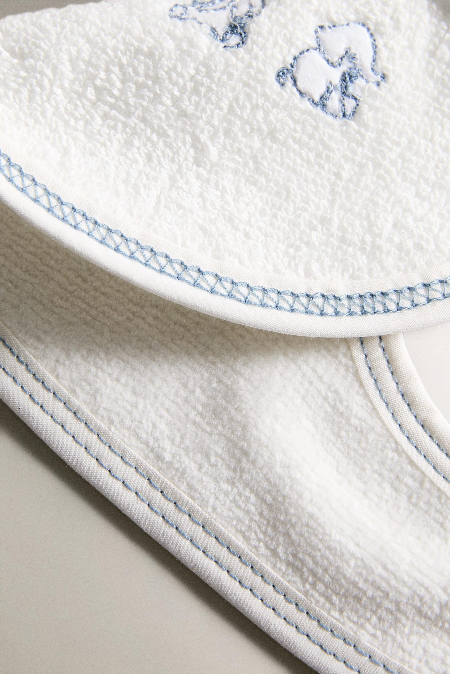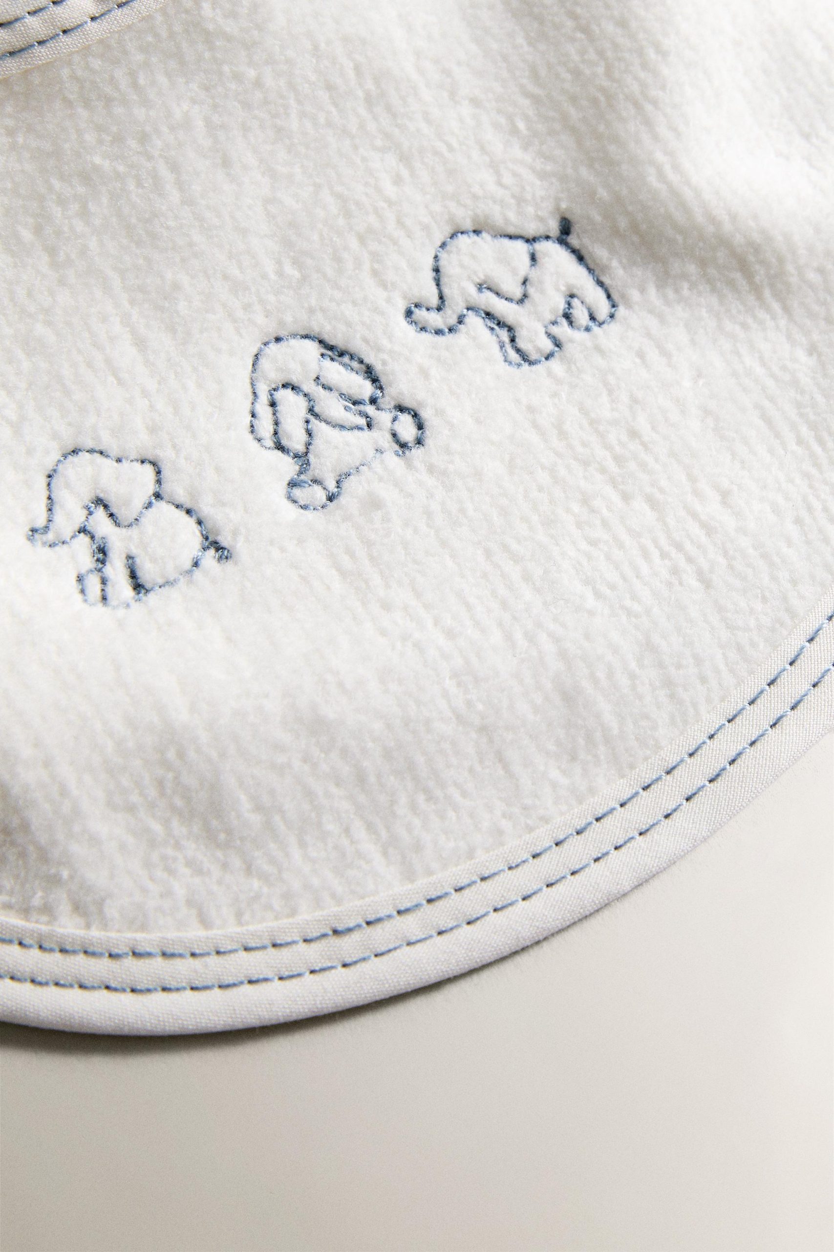 پیشبند نوزاد از پارچه مخمل پنبهای با طرح فیل و طراحی بستهشونده.