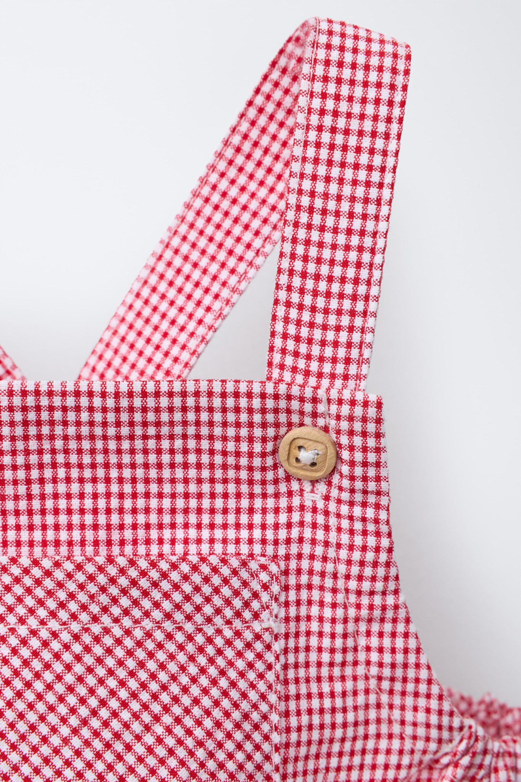 Düz yakalı ve önü düğmeli askılı tulum. Göğüste yama cep. Etek ucunda çıtçıtlı düğme kapaması.