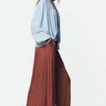 - Ön cepli, yüksek bel pantolon. Geniş paçalı. Önden fermuarlı, içten düğmeli ve kopçalı.