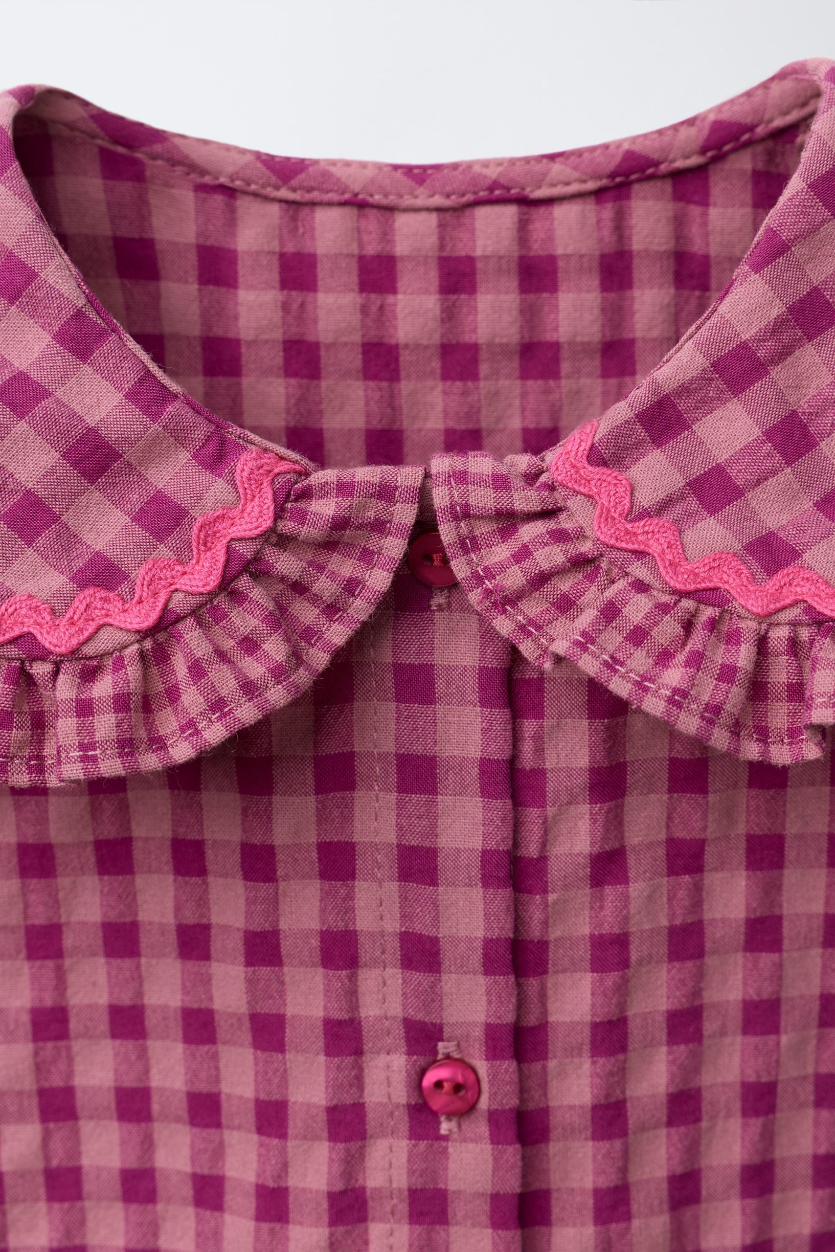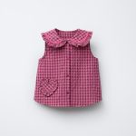 - Bebe yakalı, kolsuz bluz. Önden düğme kapamalı. Ön kısımda kalp aplikasyonu ve yakada dalgalı şerit detayı.