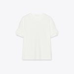 Pamuk ipliğinden üretilmiş tişört. Bisiklet yaka ve kısa kollu. Ton sür ton kombinlenmiş, volümlü çiçek detaylı.