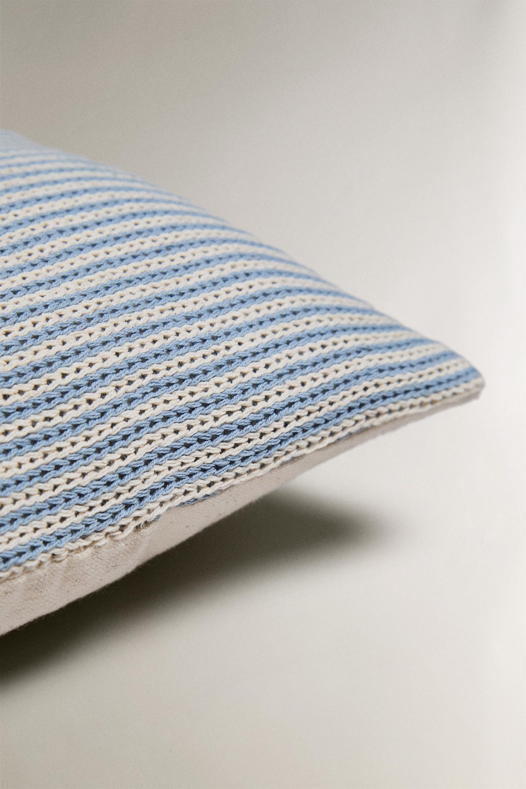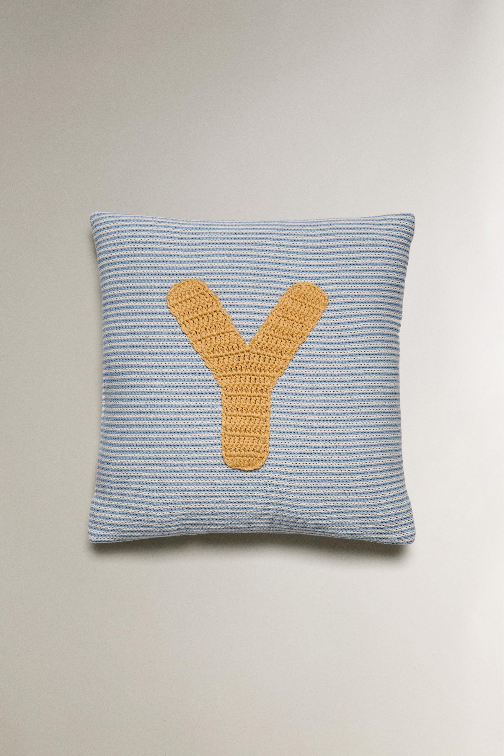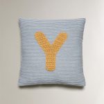 کوسن کودک از جنس پنبه با طراحی خطی و حروف “Y” در وسط، دارای پرکردگی مناسب است.