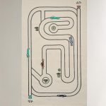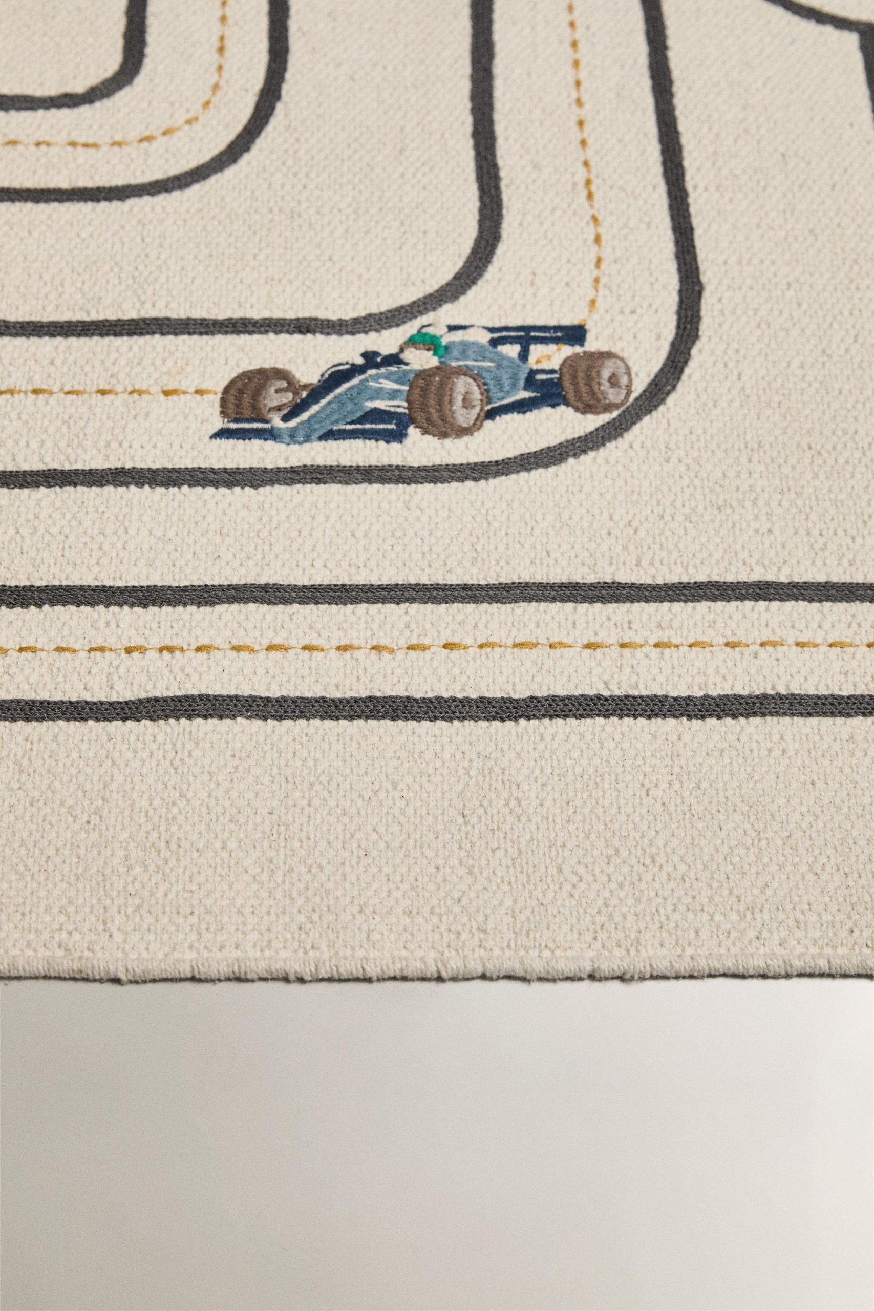 - Oyun oynamak ve dekorasyon için pamuktan yapılmış, yarış pisti desenli çocuk halısı.