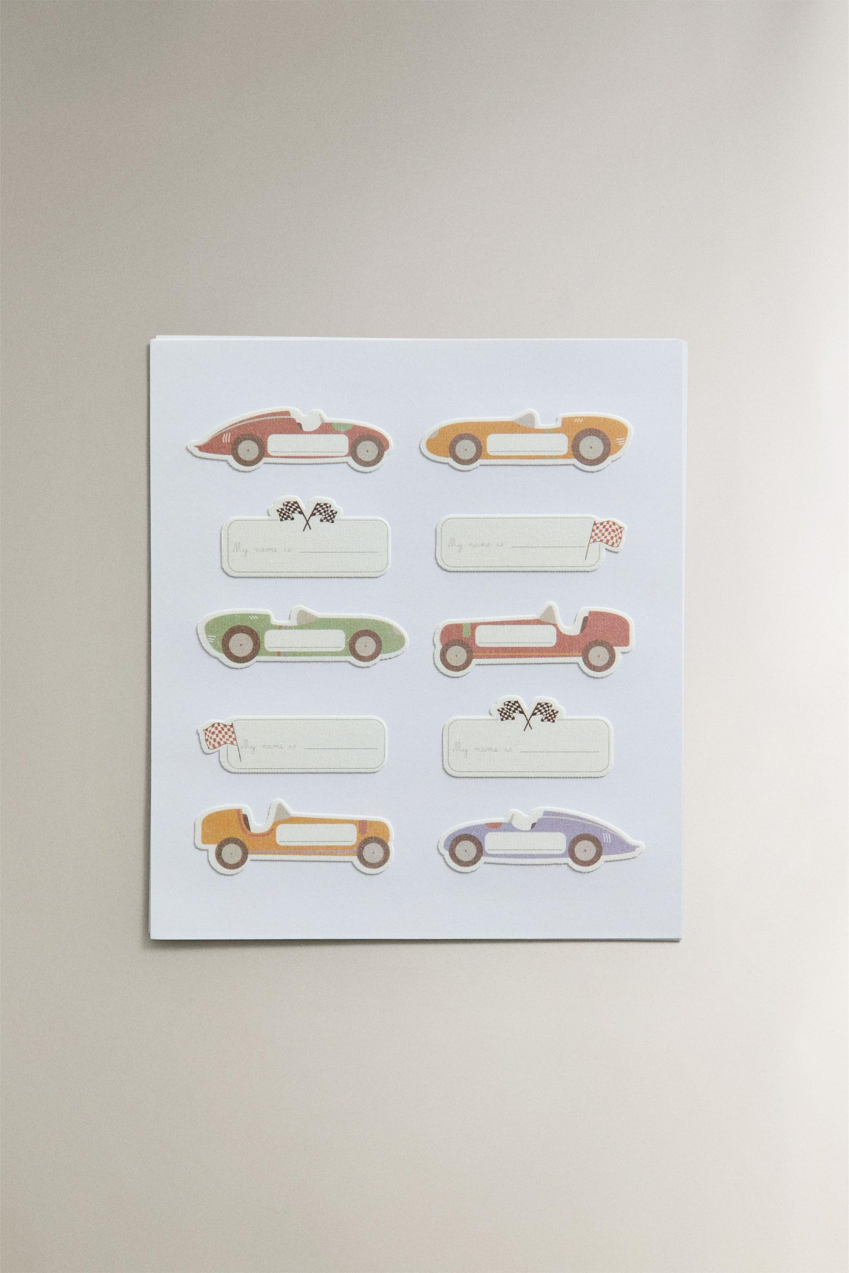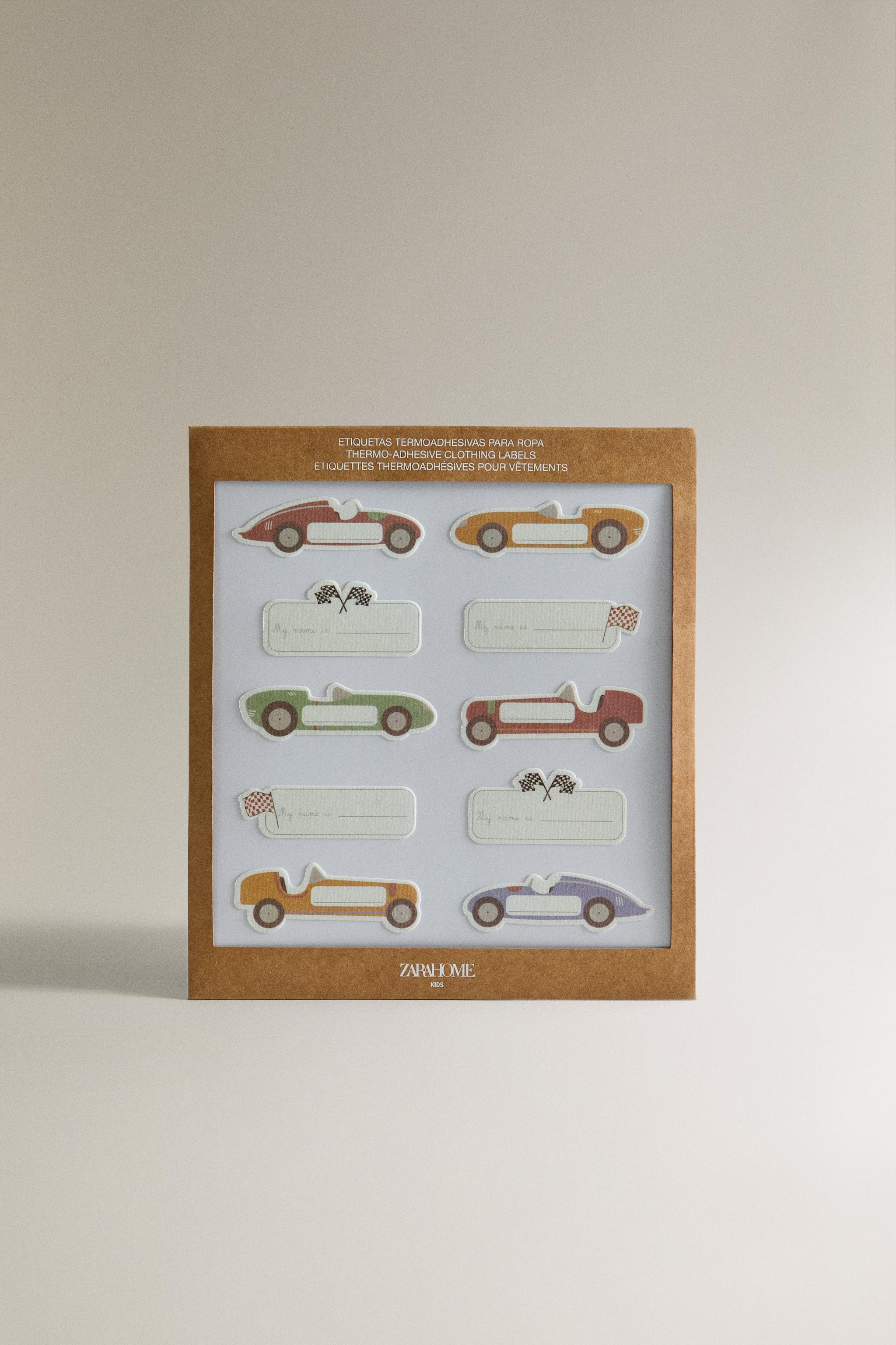 - Yarış arabası şeklinde ve yarış motifleriyle tasarlanmış, çocuklara özel tanımlayıcı ütüyle yapışan etiketler veya yamalar. Isıyla yapışır. 30 adet içerir.