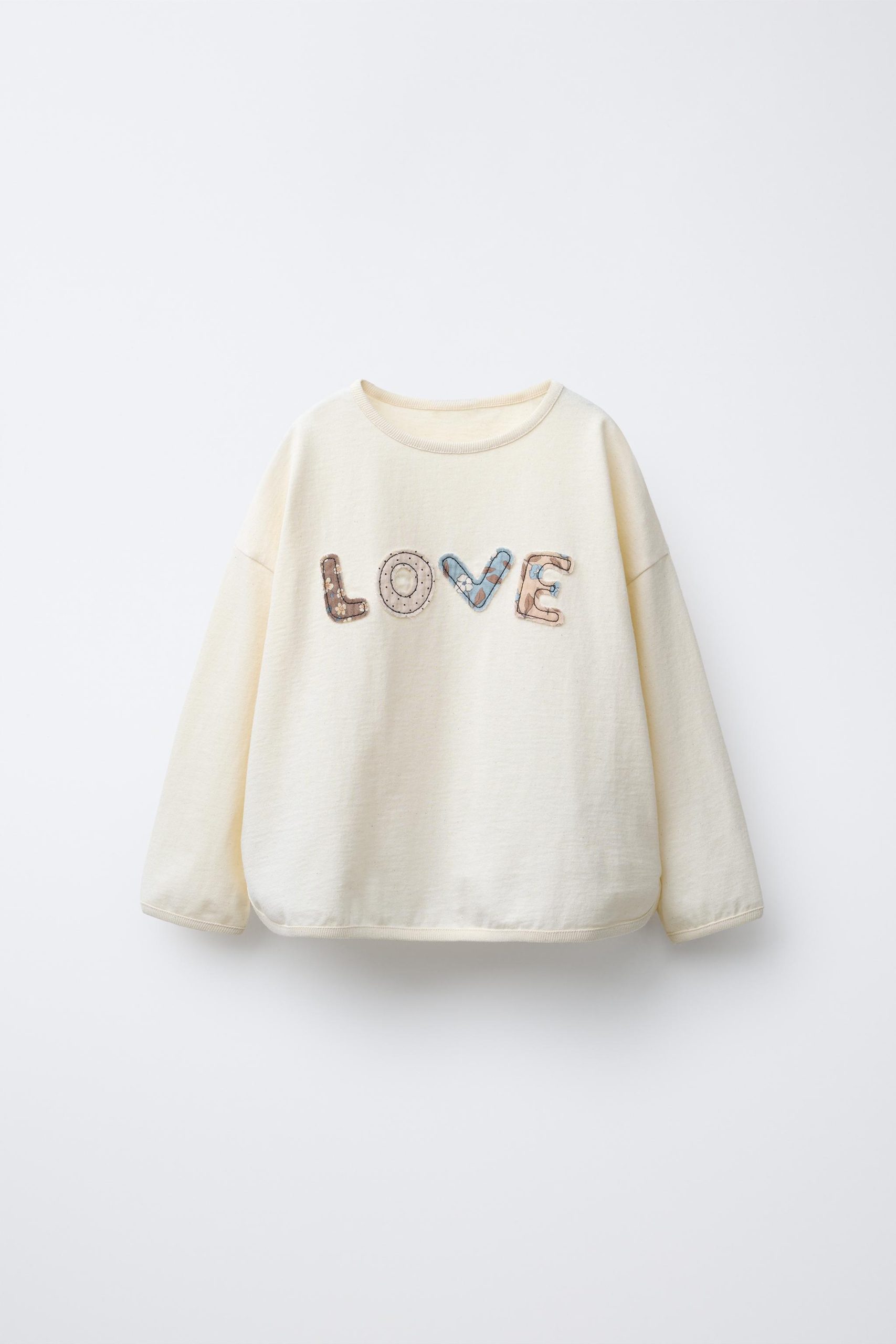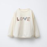 تیشرت آستین بلند یقه گرد با تزیینات نوشته بر روی سینه. از پارچه ۱۰۰% پنبهای ساخته شده است.
