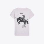 %100 yıkanmış efektli pamuktan üretilmiş tişört. Bisiklet yaka ve düşük kollu kısa kollu. Yazı ve baskı detaylı.