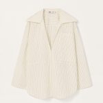 • Uzun kollu, v yaka ve yakalı gömlek. Göğüste yama cep. Yanları yırtmaçlı etek ucu. Önden düğme kapamalı.