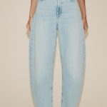- Kemer köprülü ve beş cepli, yüksek bel jean. Dikişsiz bitişli etek ucu. Önden fermuar ve metal düğme kapamalı.