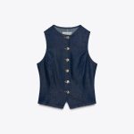 یقه گرد، جلیقه بدون آستین. با دکمه در جلو بسته میشود.