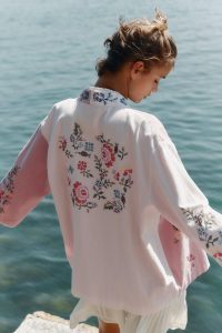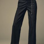- Önü belirgin dikişli, yüksek bel pantolon. Ön cepli, arkası biyeli, cepli. Önü fermuarlı ve düğmeli.